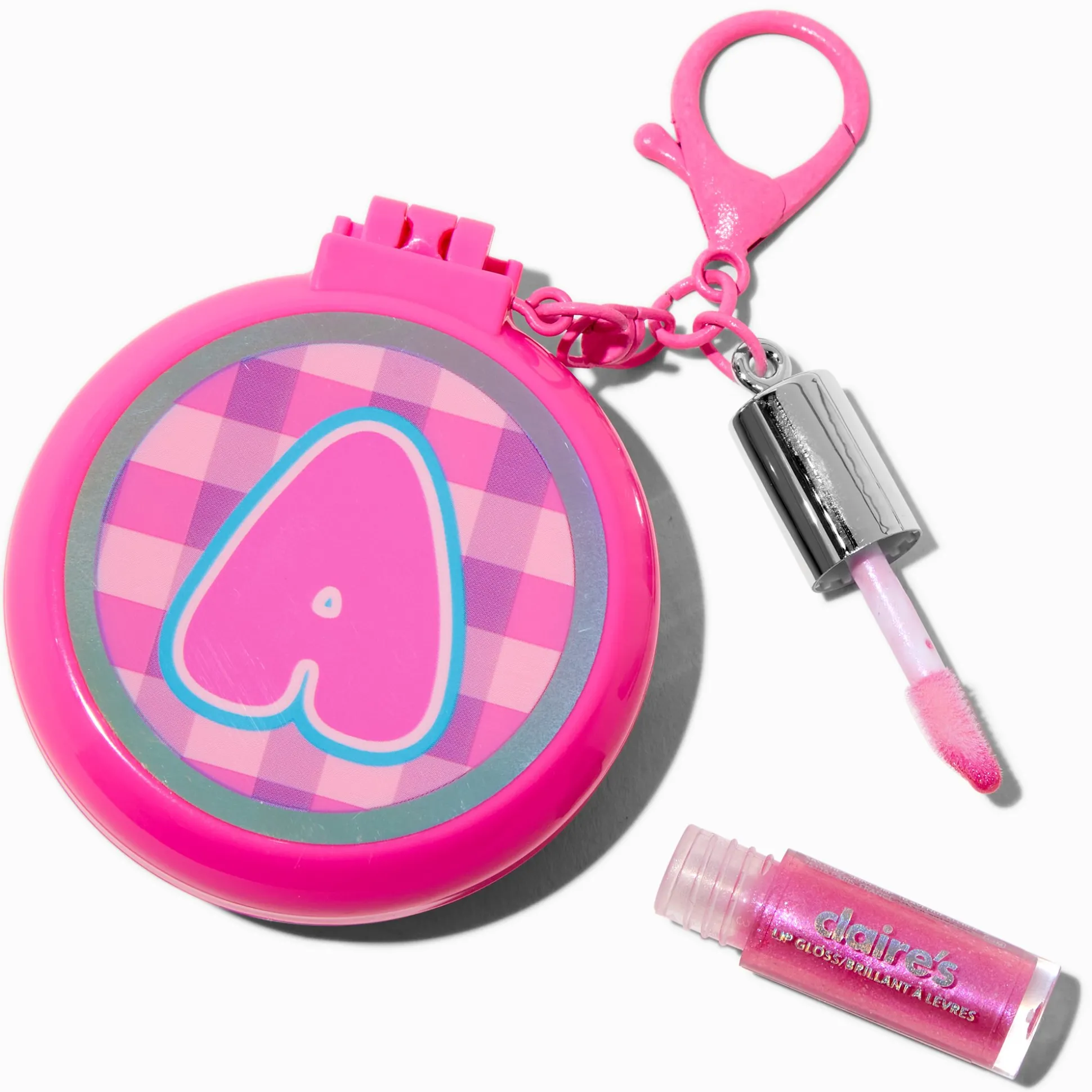 Pink Plaid Initial Hair Brush & Lip Gloss Keychain – A