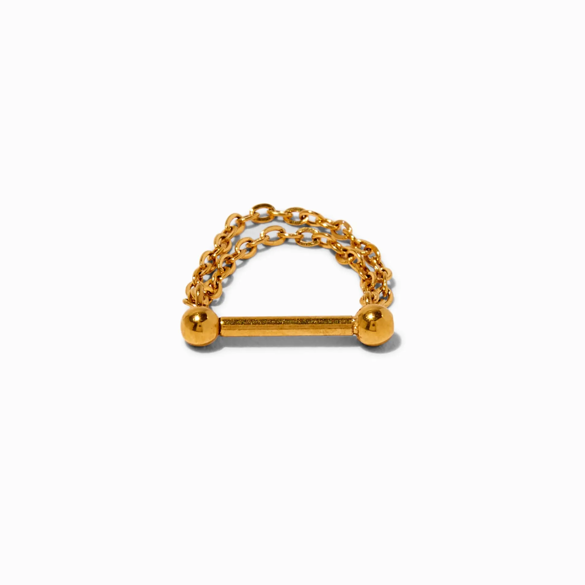 Decorate your septum nose piercing with the look of double chains. With a threadless-style closure, this nose stud’s decorative front and flatback post snap together, so no twisting or turning is needed like a traditional closure.