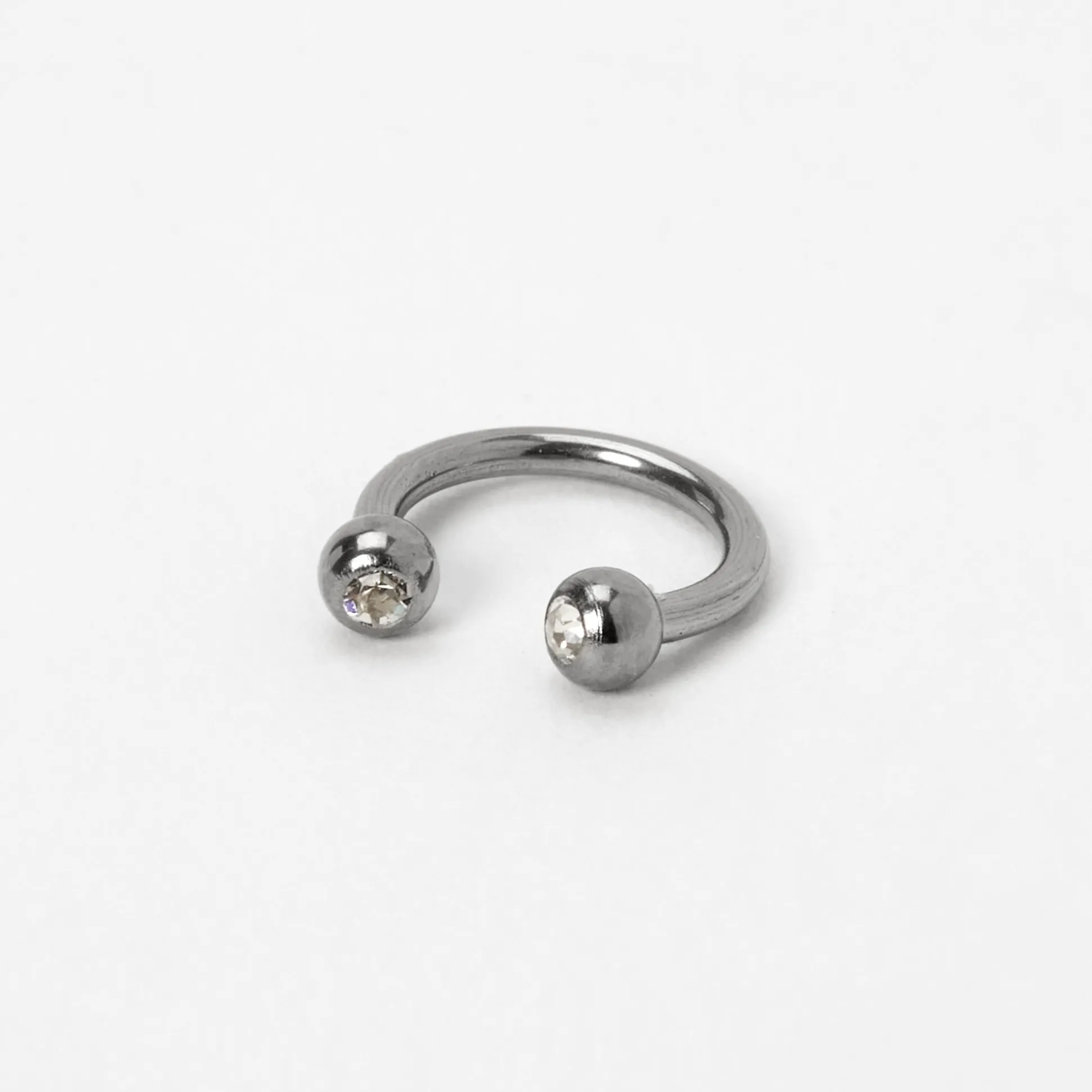 Add to your nose jewelry collection with this titanium ring for your septum! This septum nose ring features a horseshoe shape with a faux crystal on each end.
