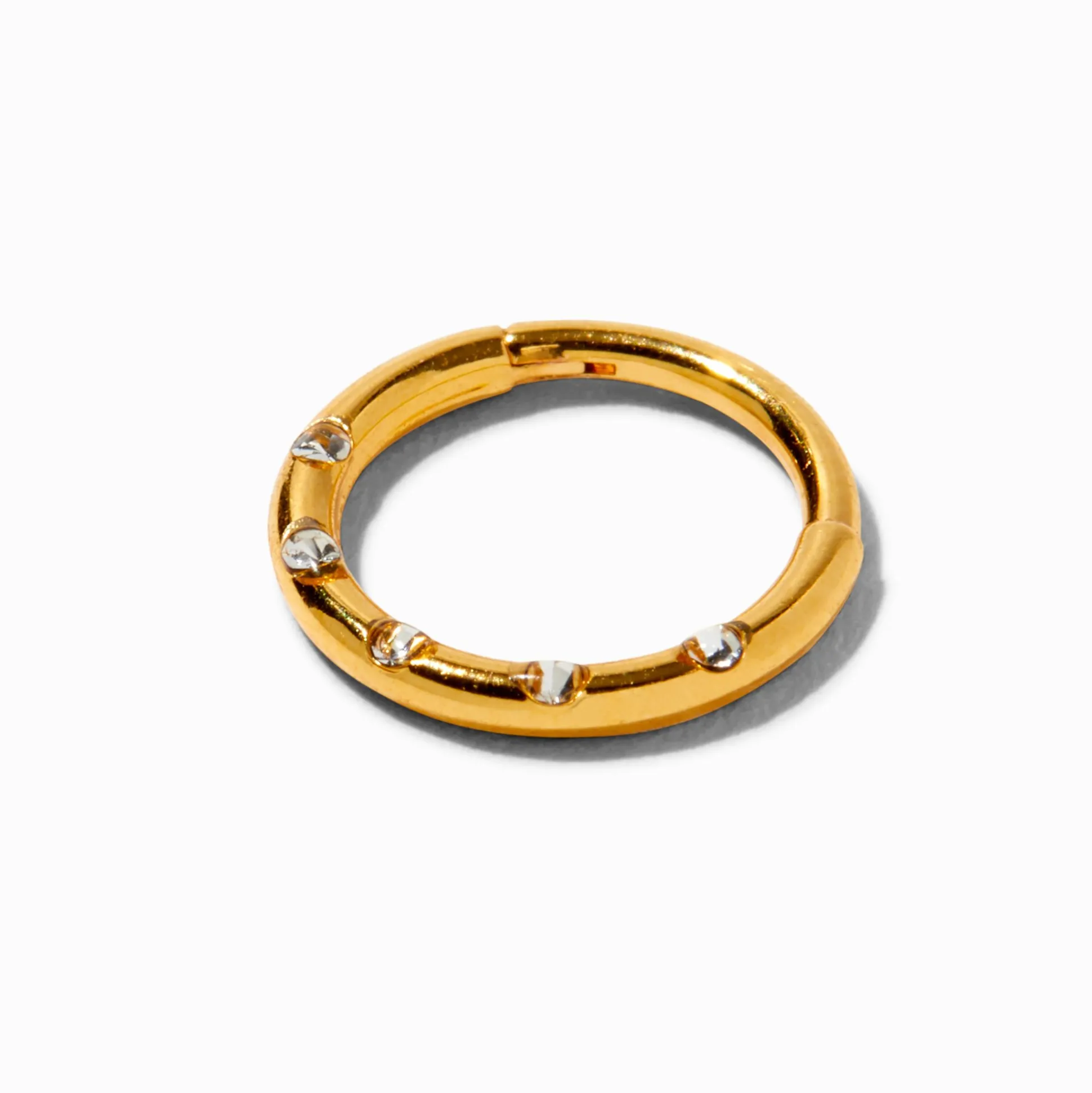 Add this 18k gold-plated hoop to your nose piercing for a touch of flashy gold and sparkly faux crystal details! The hoop has an endless loop design and a titanium construction.
