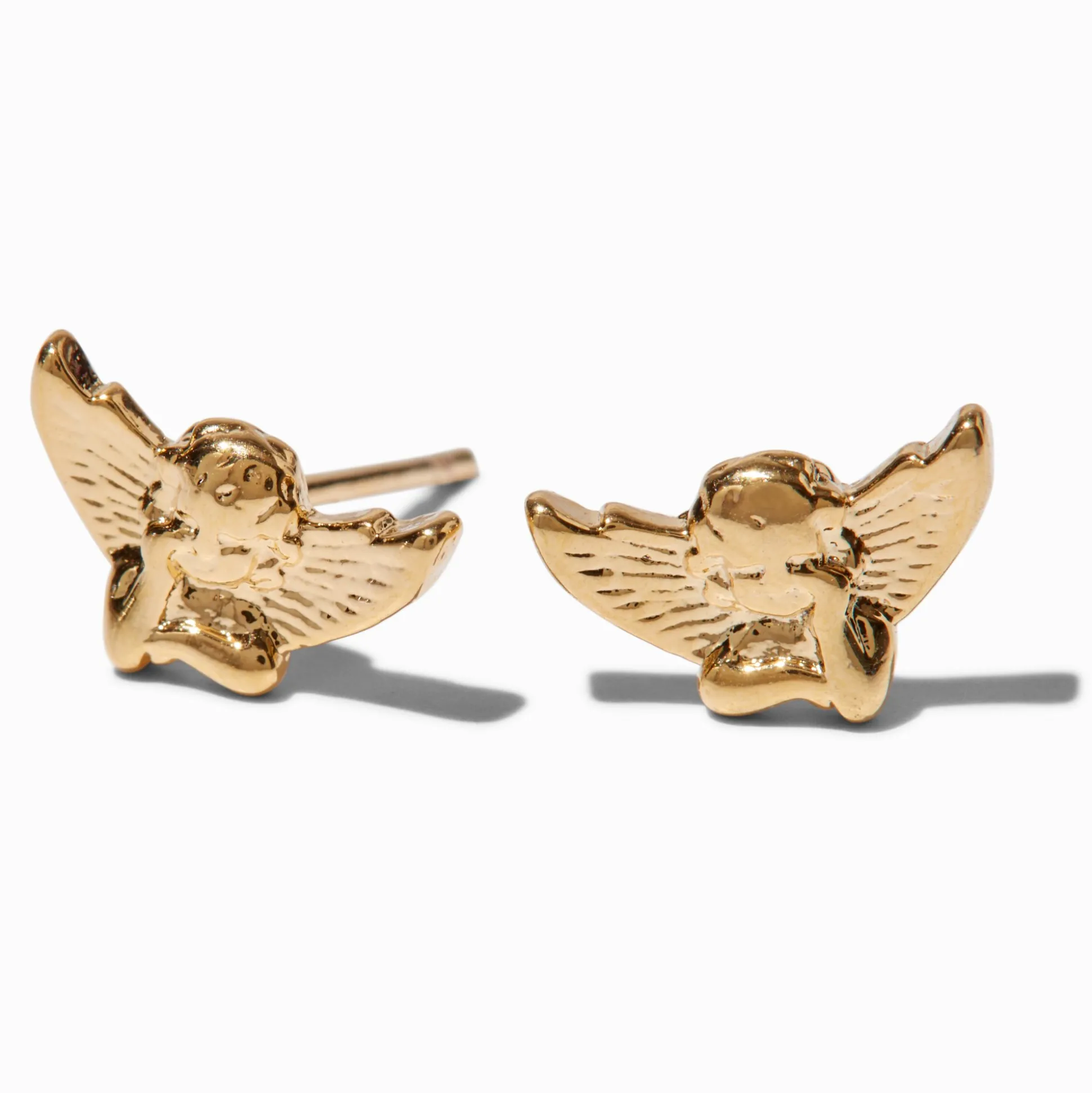 Get all of the likes in these 18kt gold plated studs. The easy studs have adorable angel designs, so you can feel angelic.