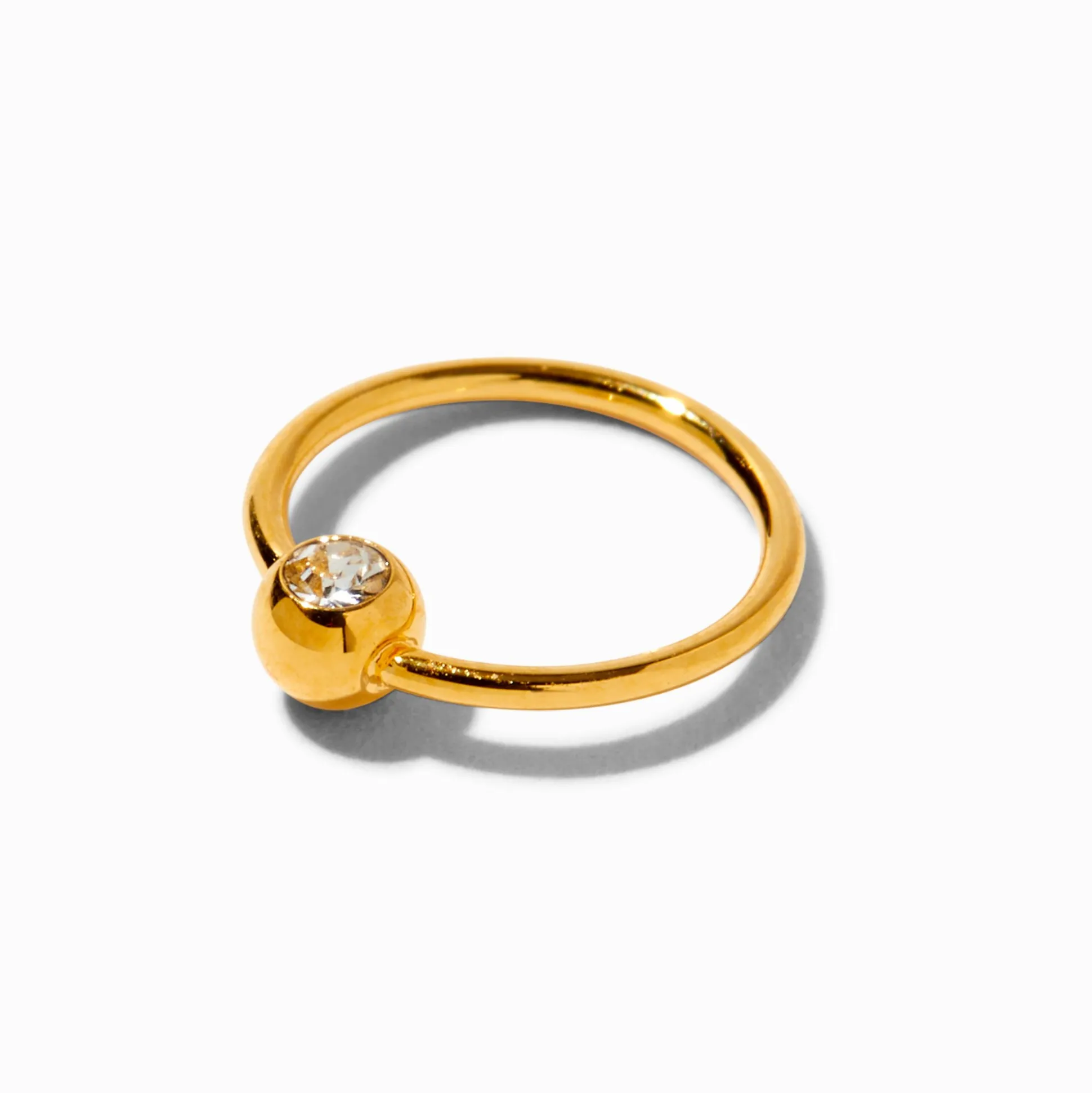 Accomplish a classic look with this hoop nose ring. This 18kt gold-plated ring features a ball with a faux crystal in the center.