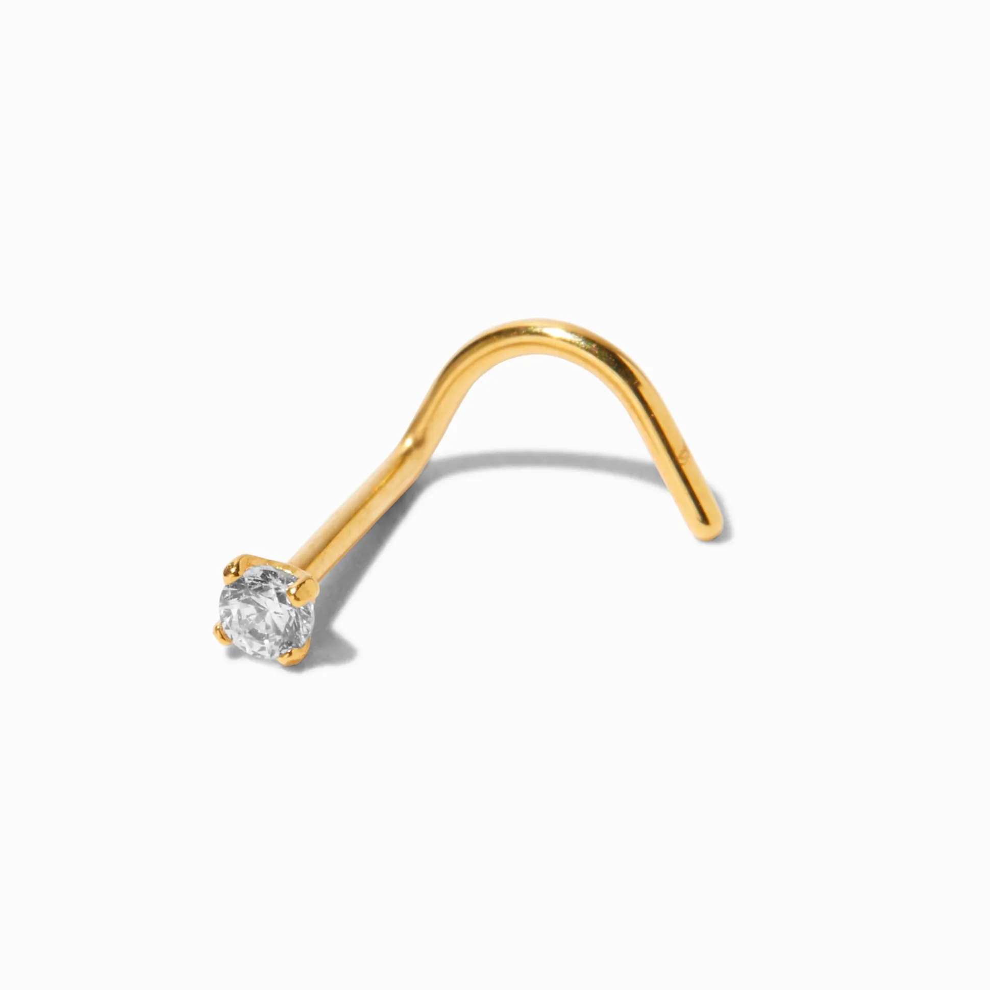 A touch of sparkle is easy to obtain with this cubic zirconia beauty! The titanium post is gold plated and has a square-shaped stud.