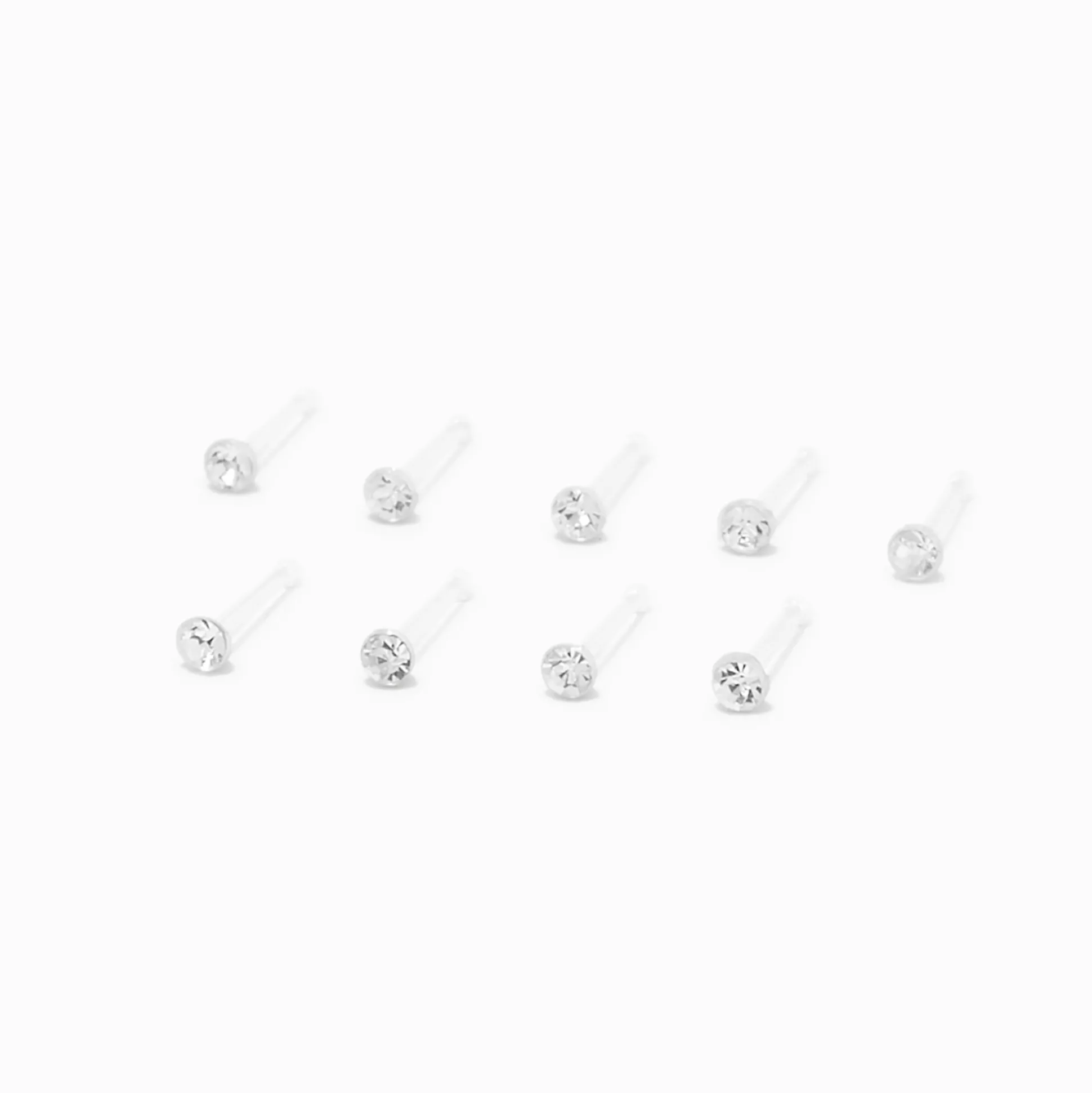 Add a pop of sparkle to an everyday clear set of nose studs! The flexible nose studs will make wear easy and comfortable.