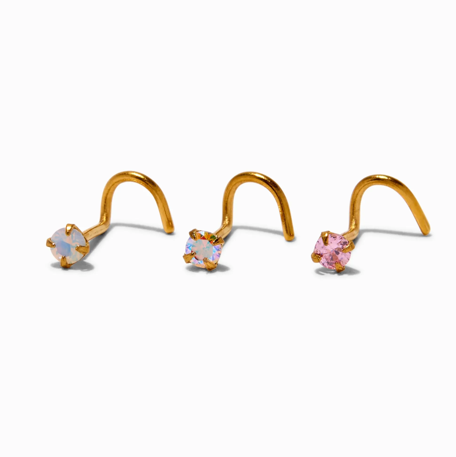 Always have the perfect nose stud with this gold-tone stainless steel set. Options include cubic zirconias in iridescent, pink, and opalescence.