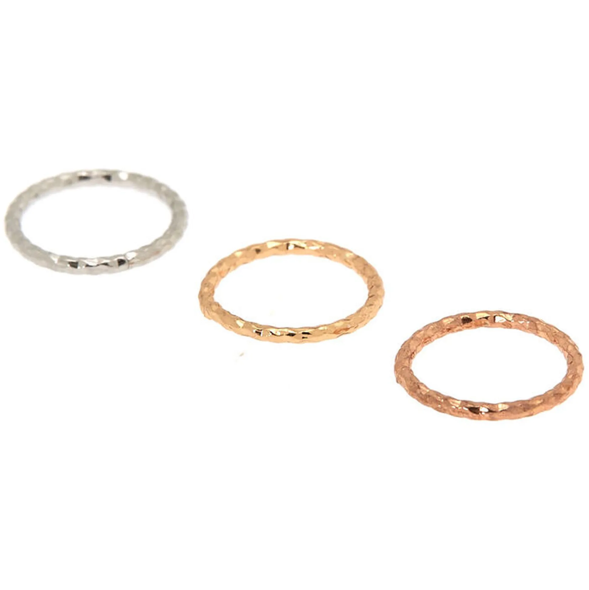 Switch up your look with mixed metal hoop nose rings! These metallic silver, rose gold, and gold-tone hoops are perfect for mixing up your nose jewelry look.
