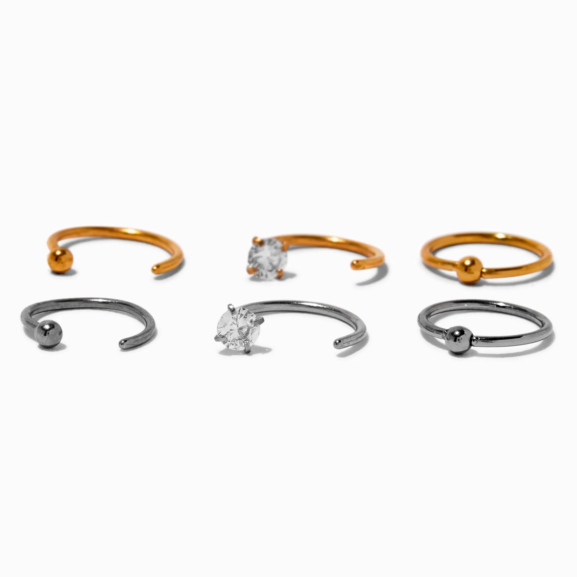 Expand your nose jewelry collection with this stunning six pack. It includes three silver-tone and three gold-tone hoops with cubic zirconia details.