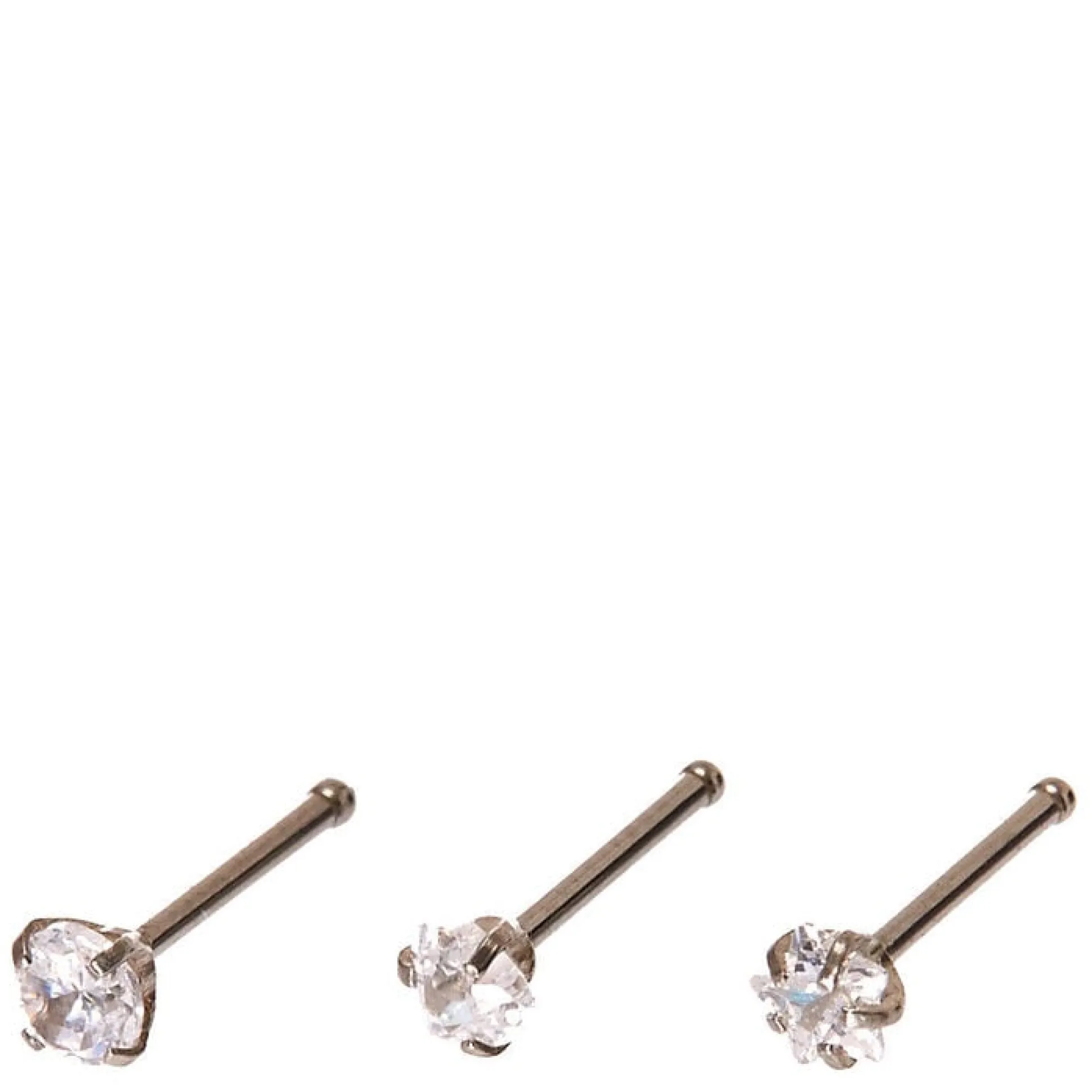 This simple set of nose studs feature cubic zirconia stones in classic shapes. Rock the square, star, and triangle shaped cubic zirconia stones in your nose piercing.