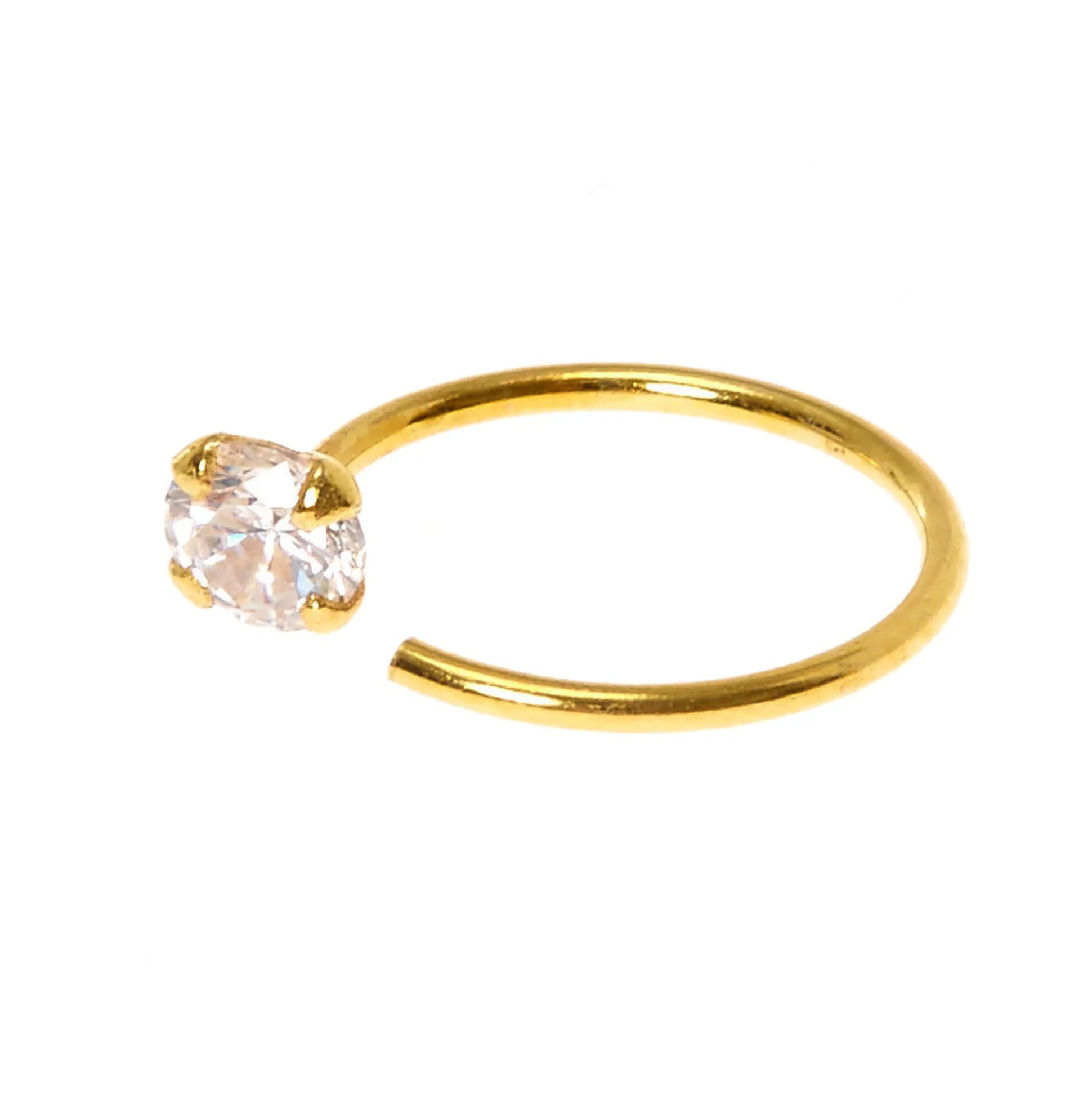 Add this sterling silver gold-tone hoop to your nose piercing for a glam touch! The cubic zirconia features a four-prong setting with a clear sparkle finish.