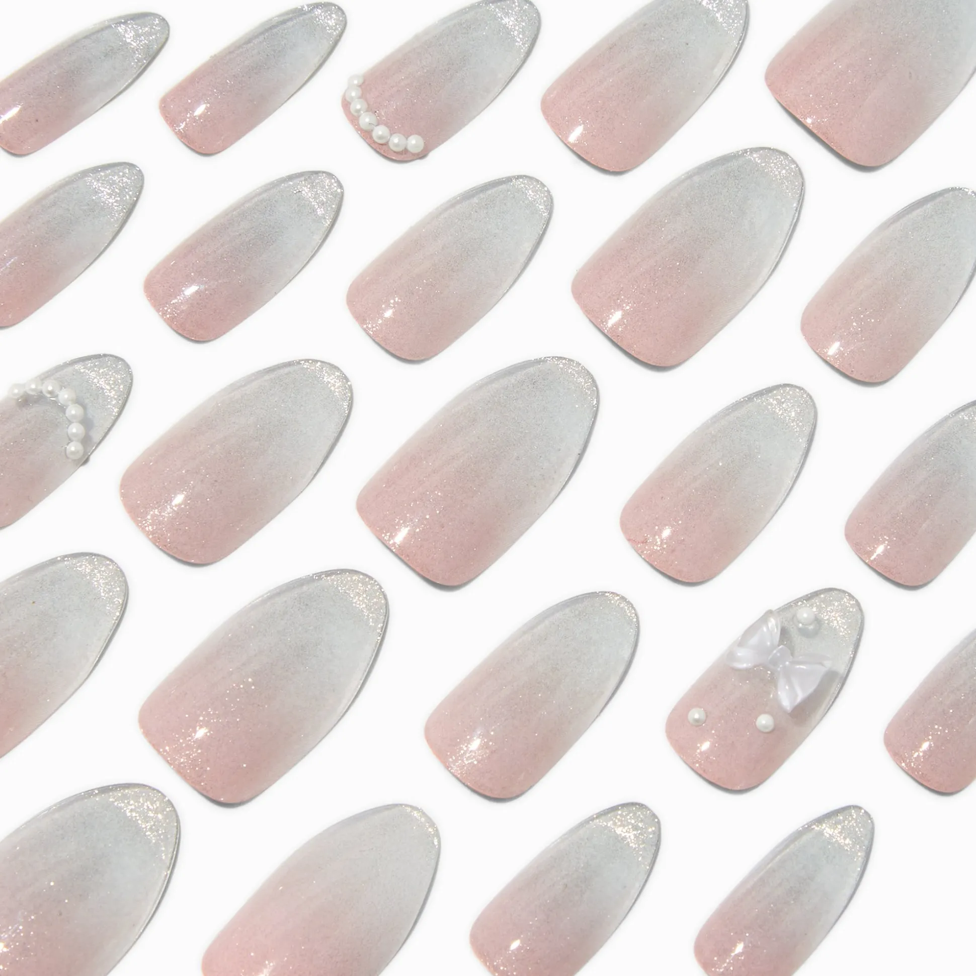 With an improved fit and up to a 7-day wear, these vegan faux nails are on-trend faves. They come in 12 different sizes, so finding the perfect shaped nail is a breeze. With a stiletto shape, these faux nails have 3D bow charms and a glitter finish.