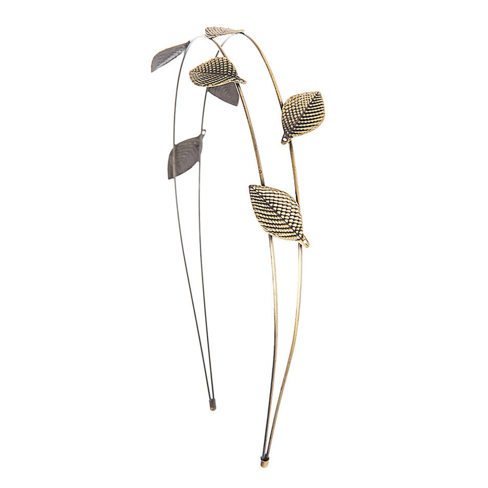 Double up on nature with this headband. Antique gold leaves adorn two thin metal bands.