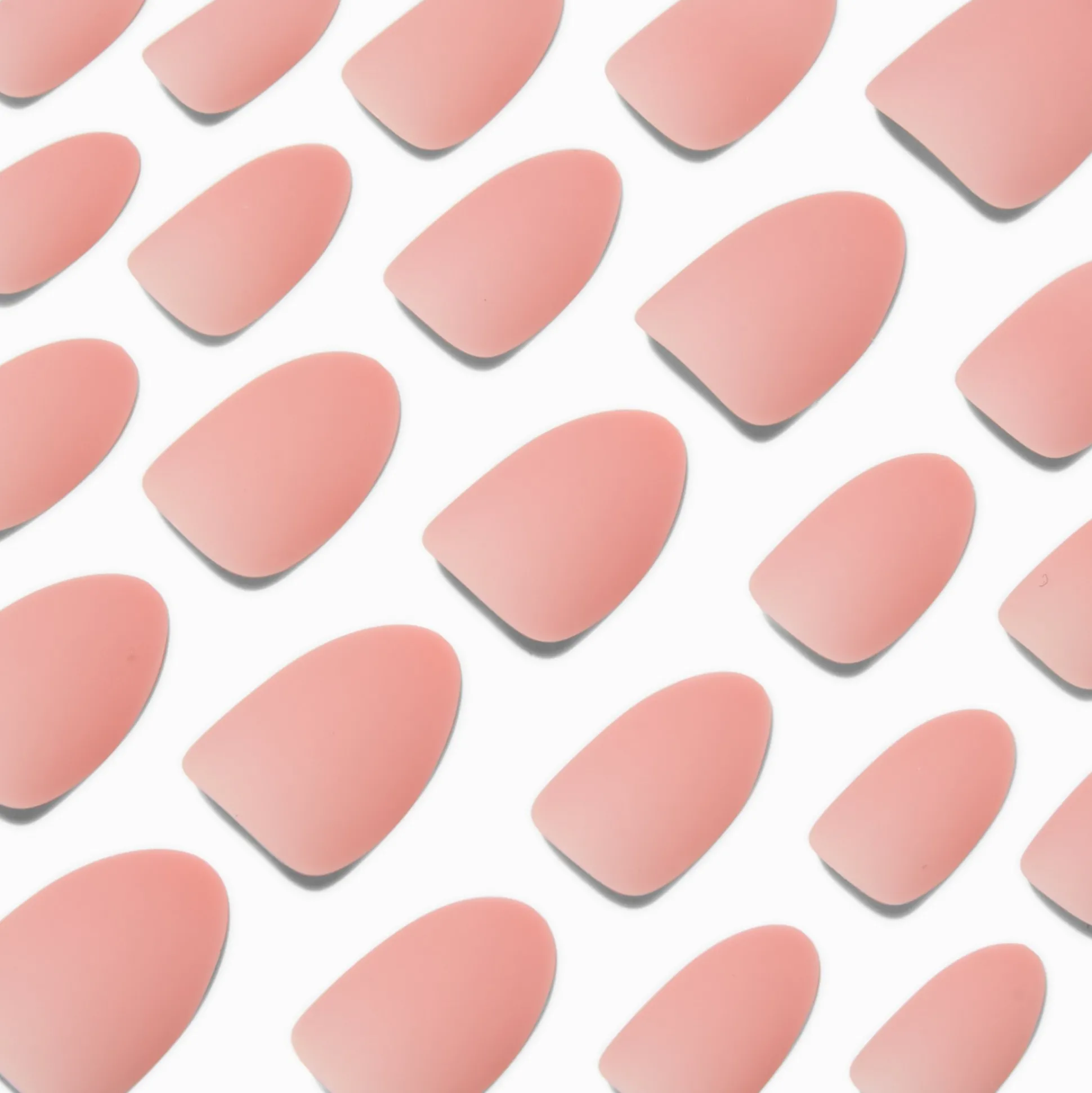 With an improved fit and up to a 7-day wear, these short almond vegan faux nails are on-trend faves. They come in 12 different sizes, so finding the perfect shaped nail is a breeze. With a short almond shape, these faux nails have a baby pink finish.