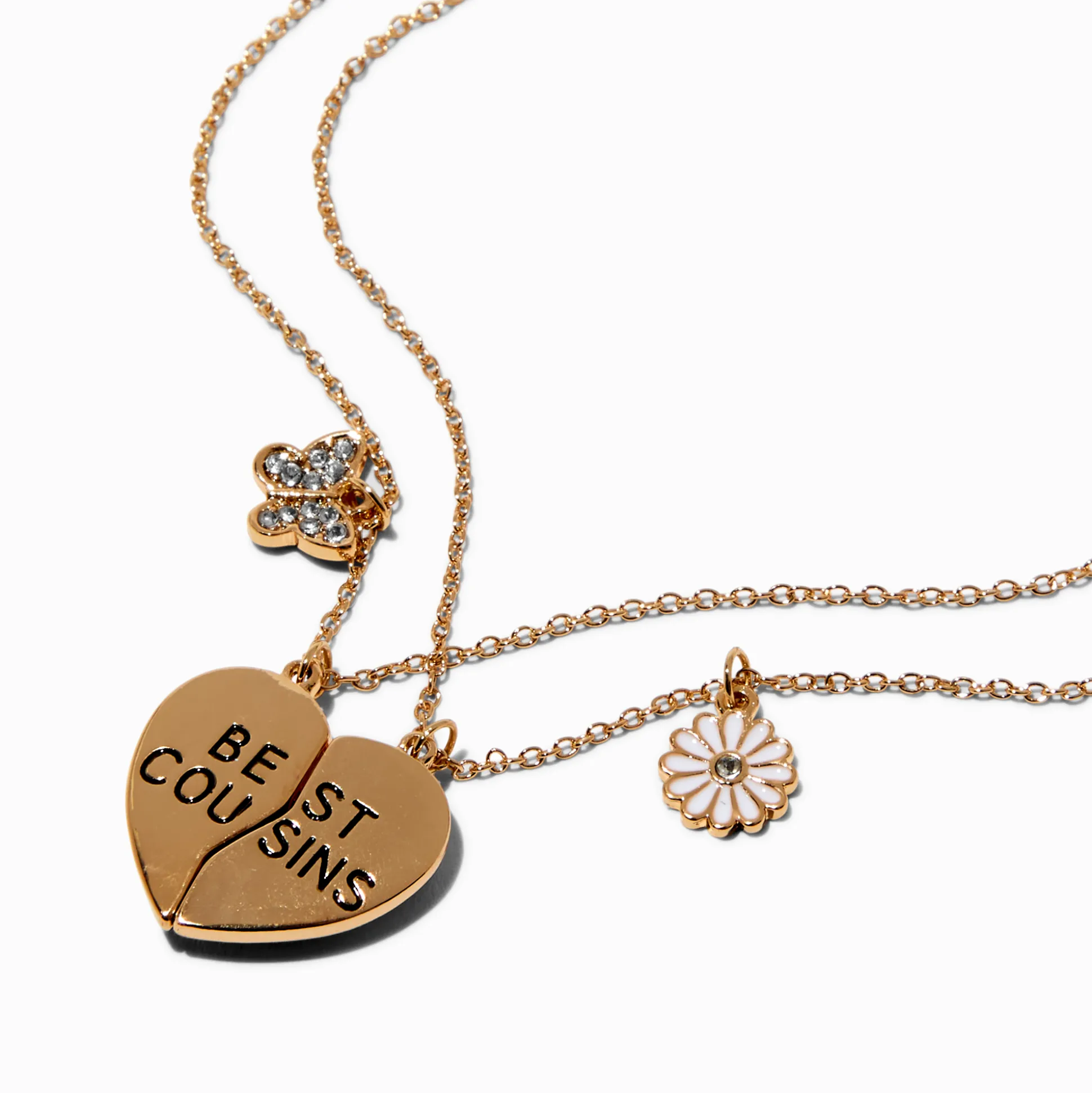 Your cousins are your first friends. Celebrate your cousin bestie with this necklace set. The split-heart design says “Best Cousins.” One necklace has a faux crystal-covered butterfly design, and the other has a faux crystal-covered enamel flower. Keep a half to yourself and surprise your cousin with the other.