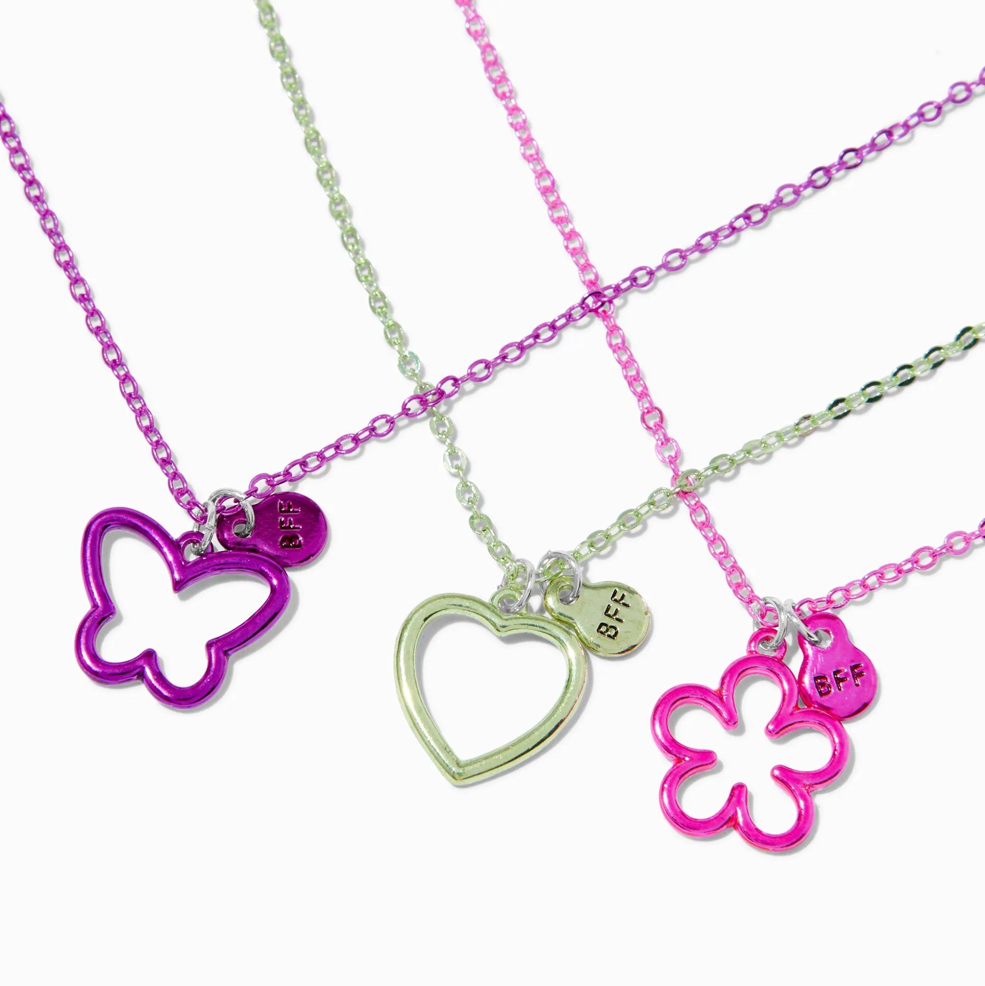 This necklace set features three pendant necklaces that you can share with two of your besties. The cut-out designs add flair to your ‘fit without overpowering your look and each piece comes with a dainty “BFF” charm.