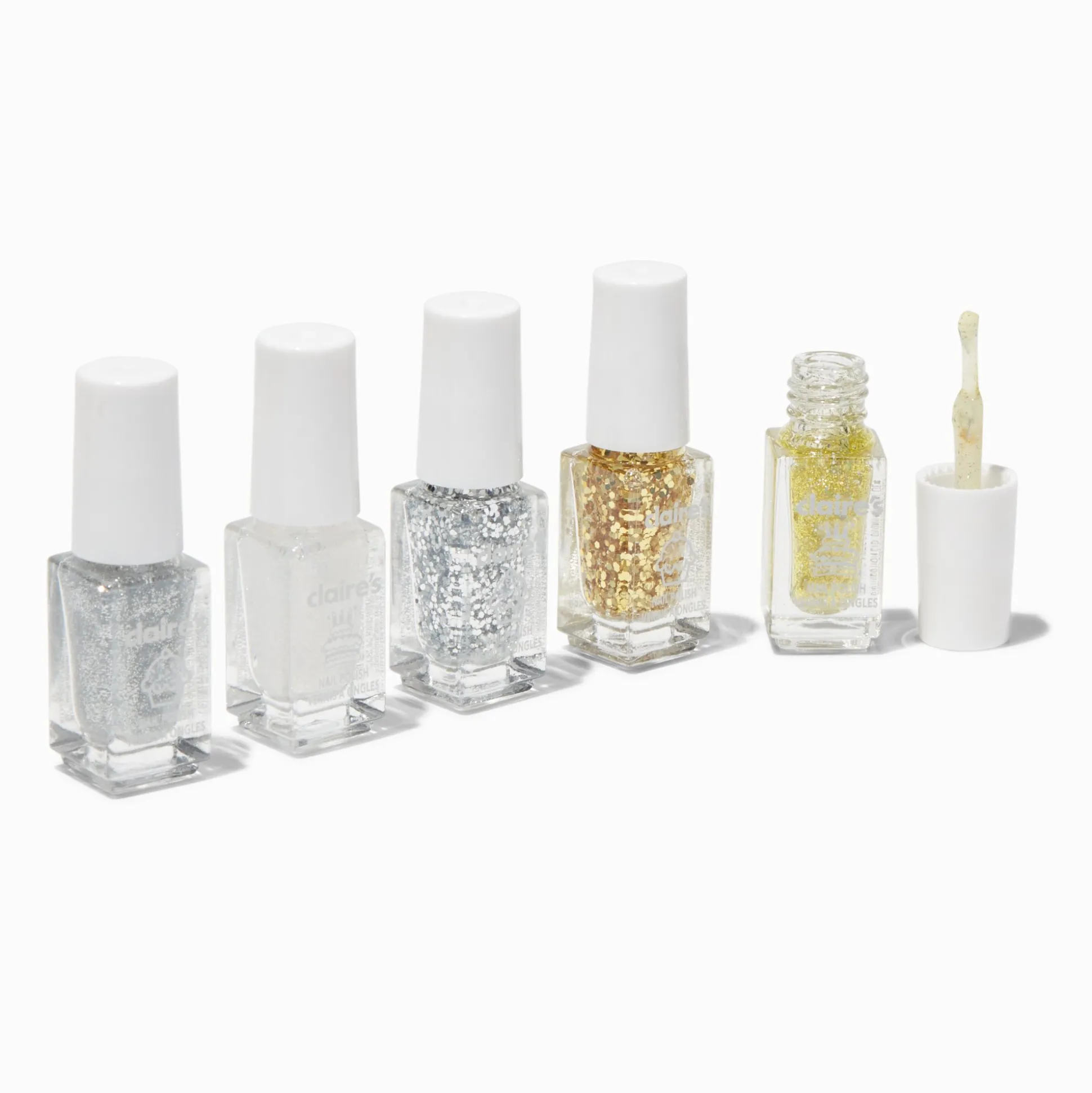 These shimmering nail polishes are twice the fun with a yummy scent. Nail polish is water-based; just peel off for quick and easy removal.
