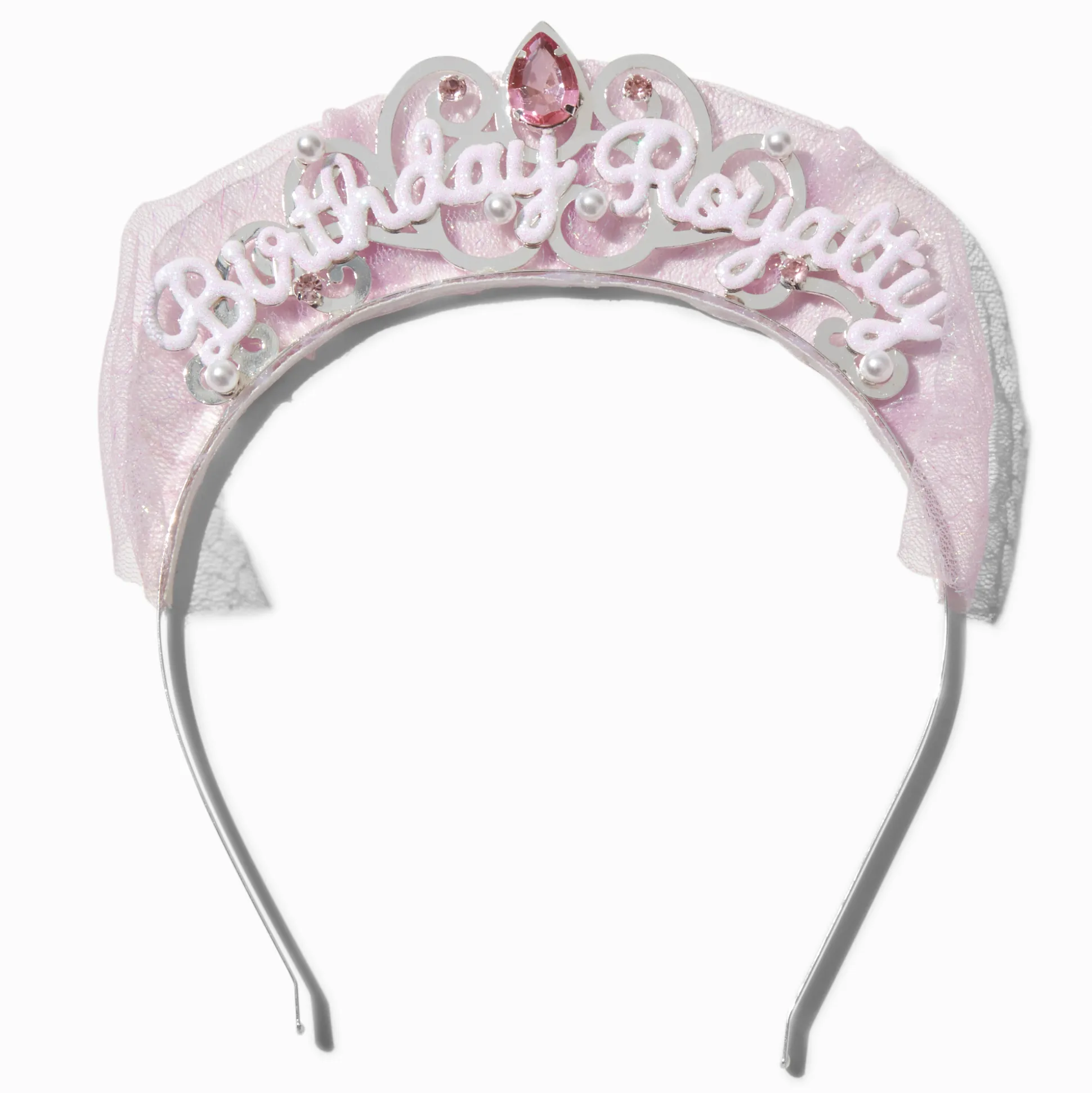 You’re the birthday girl so let it be known! This silver-tone headband says “birthday royalty” in light pink with glitter, faux gems, and tulle detailing.
