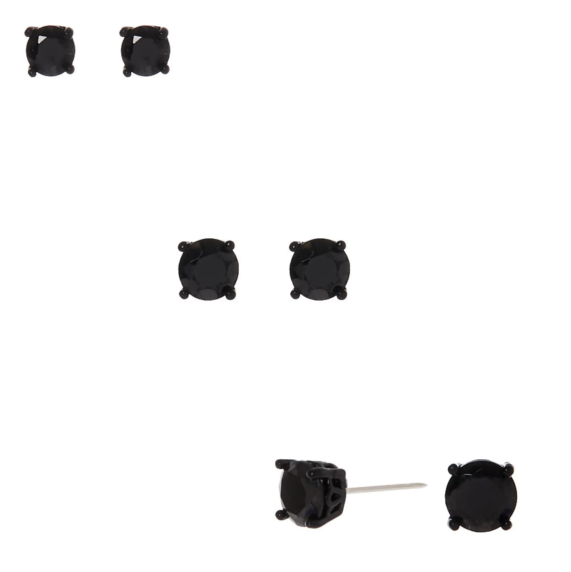 If you want your ears to sparkle with every step you take, then this set of earrings is perfect for you. The set includes 3 pairs of black cubic zirconia studs in different sizes.