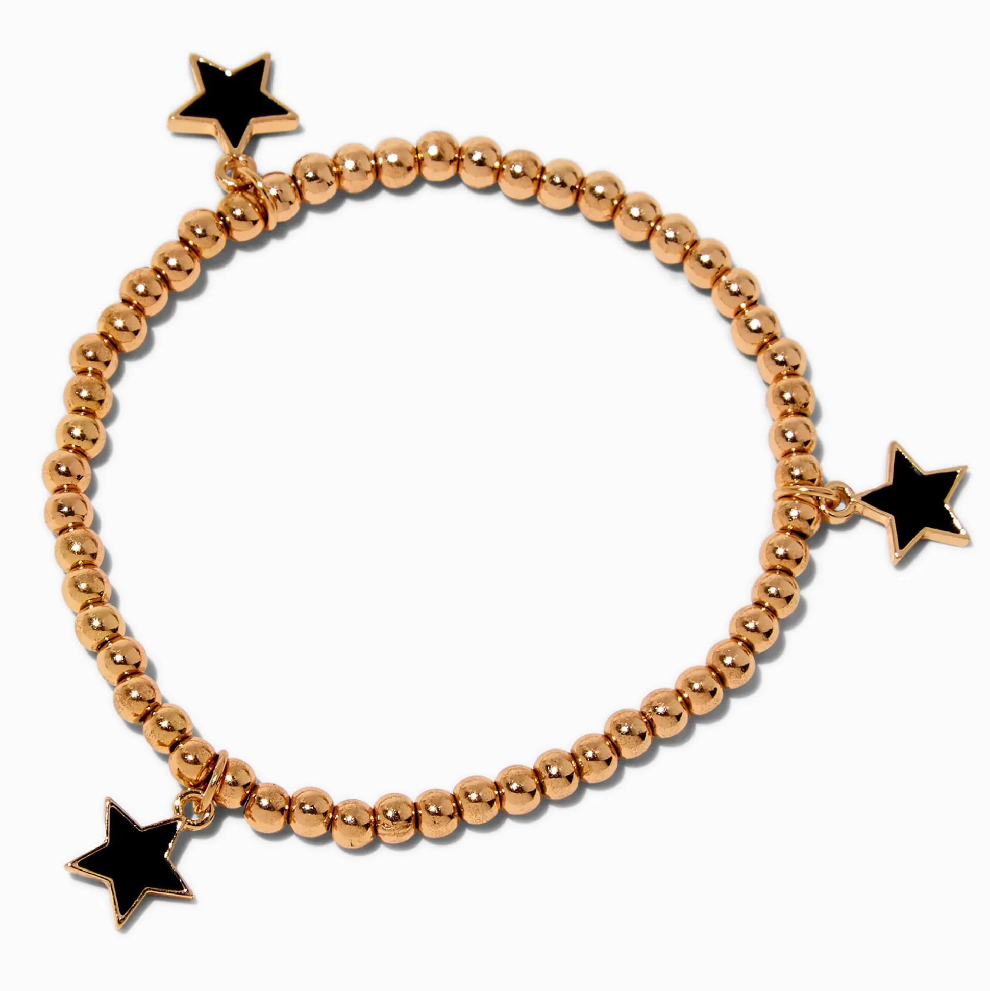 Give a little star power in this beaded stretch bracelet. It’s finished with black enamel star charms and beads.