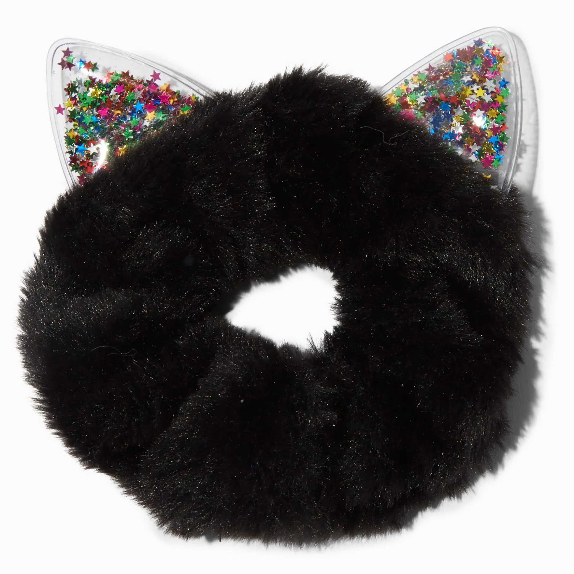 Get your kitty cat on with this fun hair scrunchie! The black faux fur scrunchie features cute cat ears that have been filled with colorful confetti. Your ponytail or bun will thank you when you accent them with this adorable accessory.