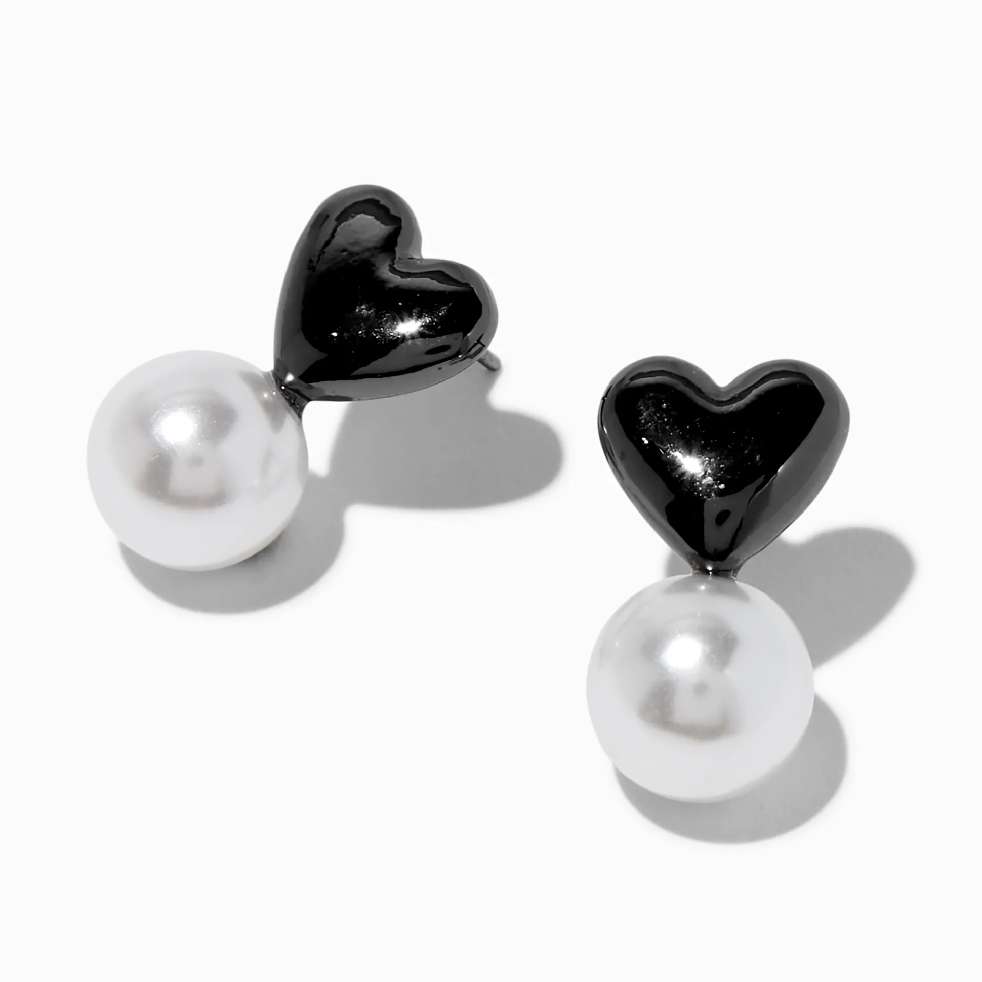 Go classic with these delightful stud earrings. The silver-tone earrings have a faux pearl with a black heart detail on the top.
