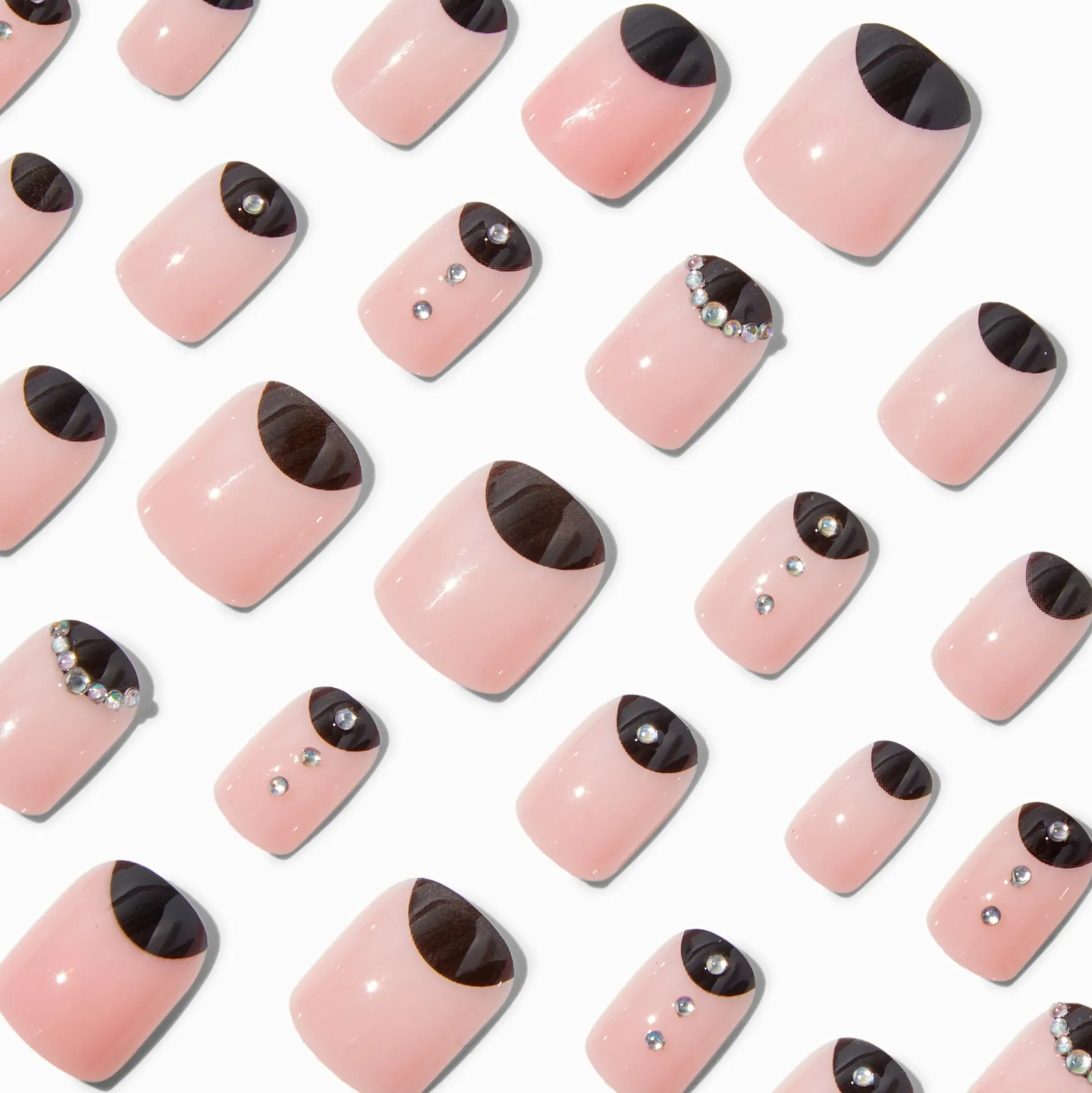 With an improved fit and up to a 7-day wear, these vegan faux nails are on-trend faves. They come in 12 different sizes, so finding the perfect shaped nail is a breeze. With a square shape, these faux nails have a blingin’ design.