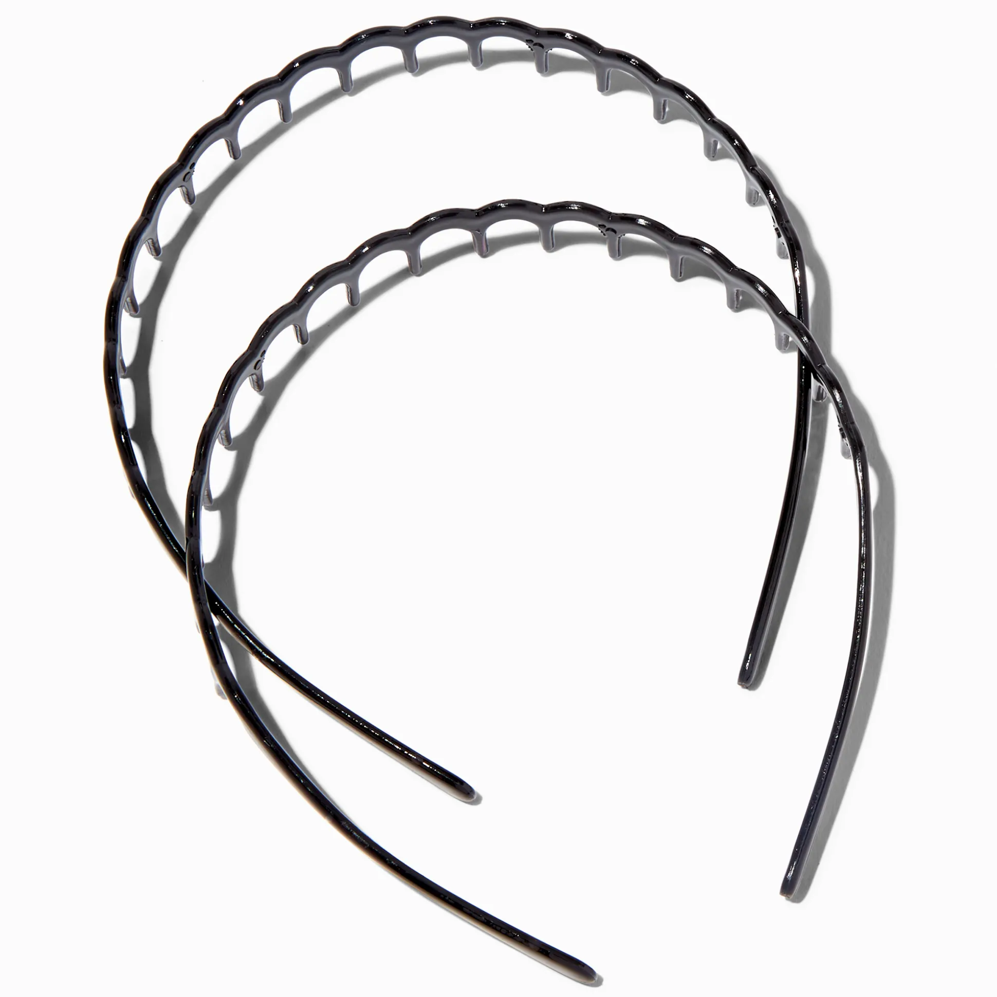 Keep your hair out of your face in classic style in these headbands. The black-tone headbands have scalloped designs for added interest.