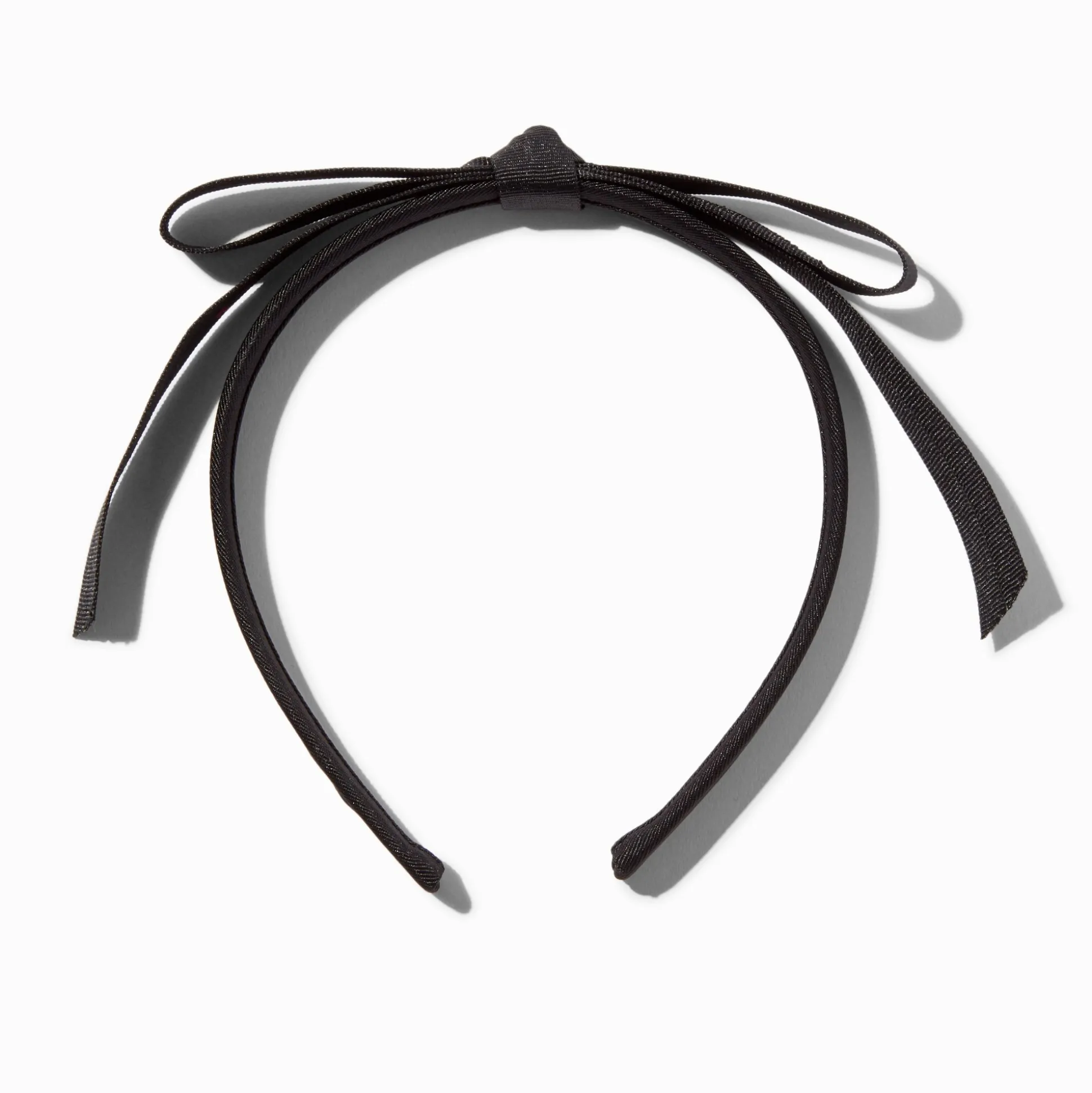 Keep your look on fleek and your hair out of your face with this skinny headband. It’s covered in black grosgrain ribbon that forms a bow for the perfect finishing touch.