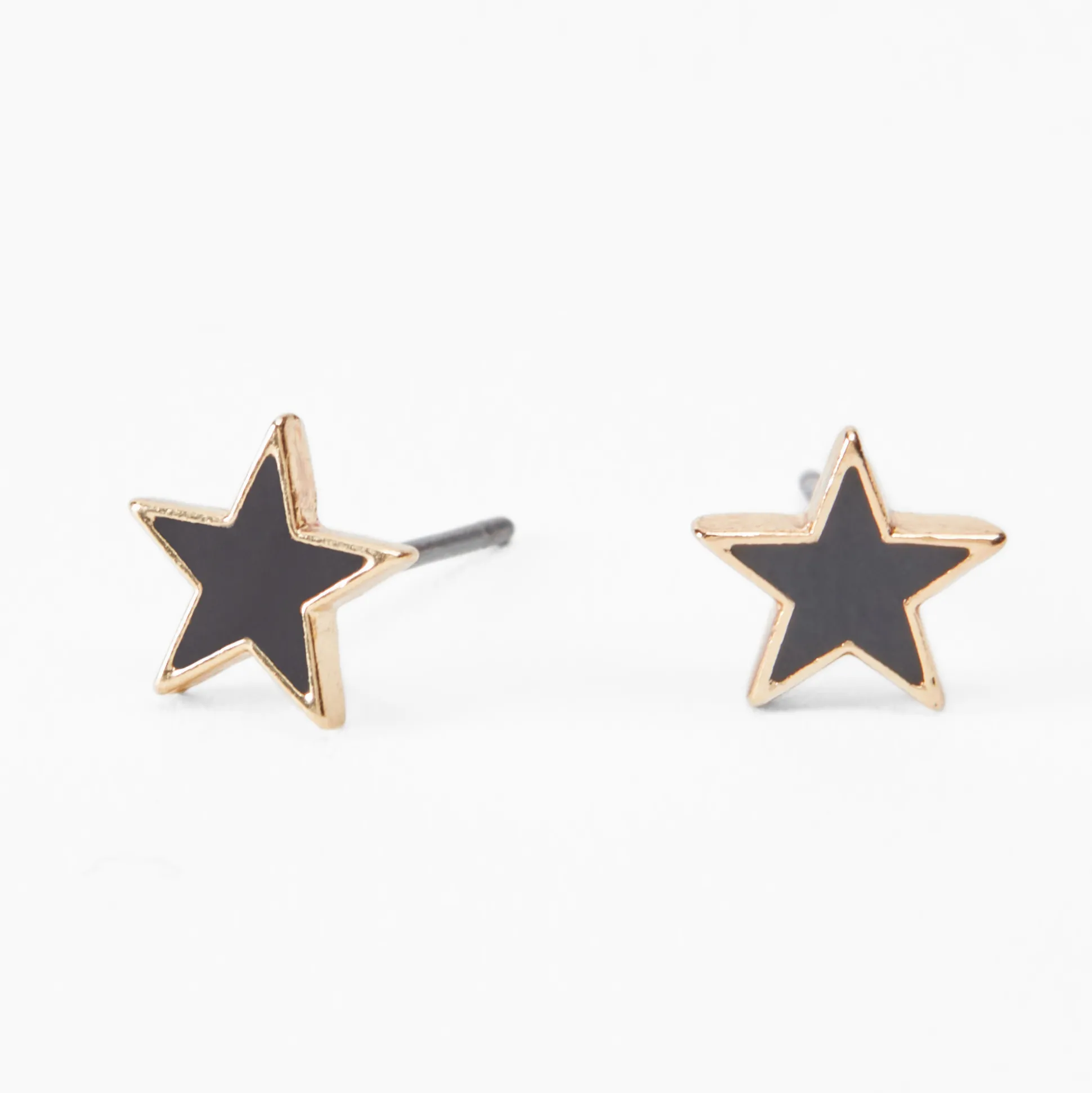 Add a pop of bold, edgy detail to your jewelry collection with these studs! This pair of earrings features black enamel stars on each gold-tone stud.