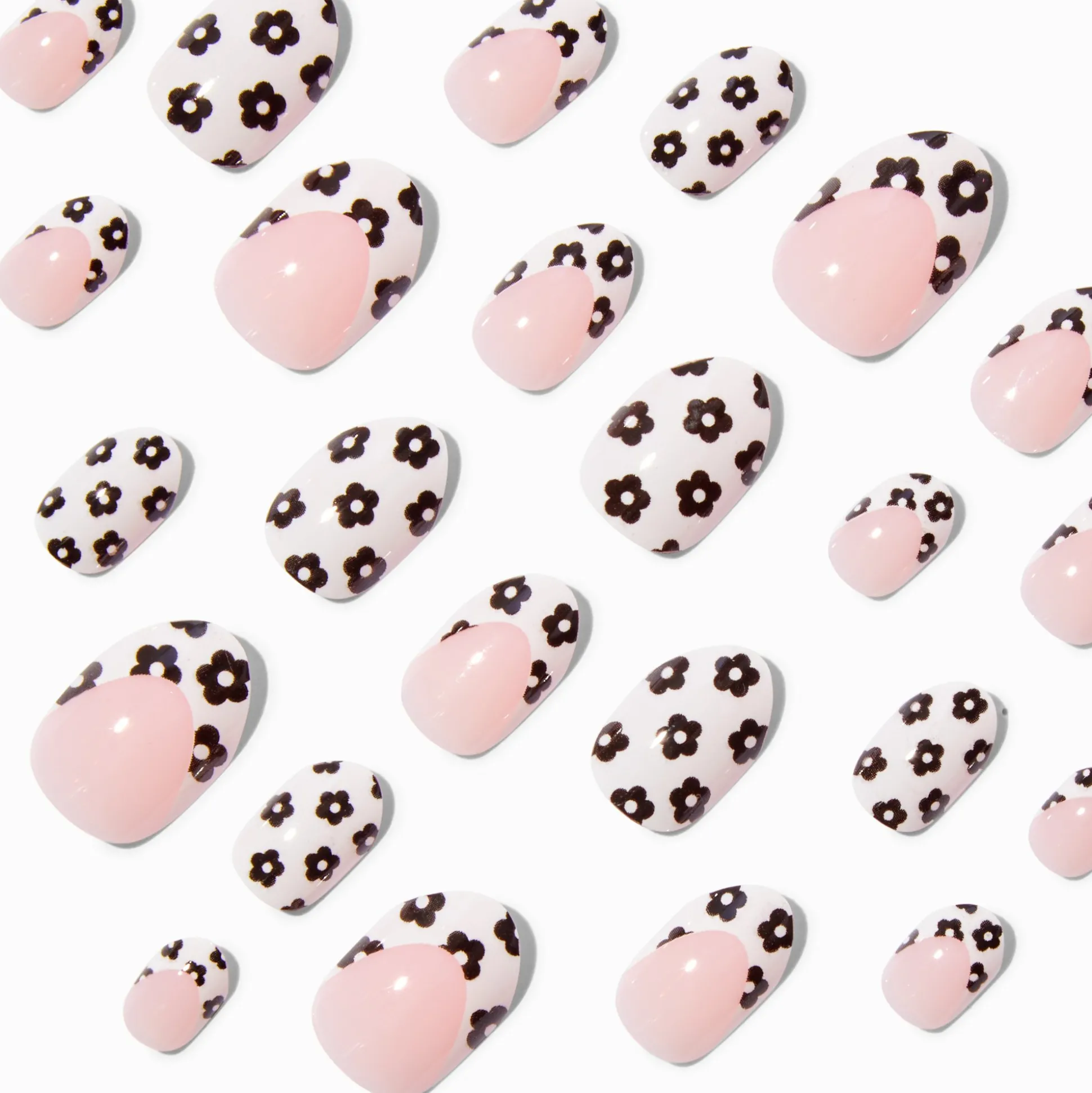Delightful daisies will be right at your fingertips with this on-trend set of faux nails. Stiletto-shaped nail set features a black and white stylized daisy designs. Nails are easy to apply, just press on and go!