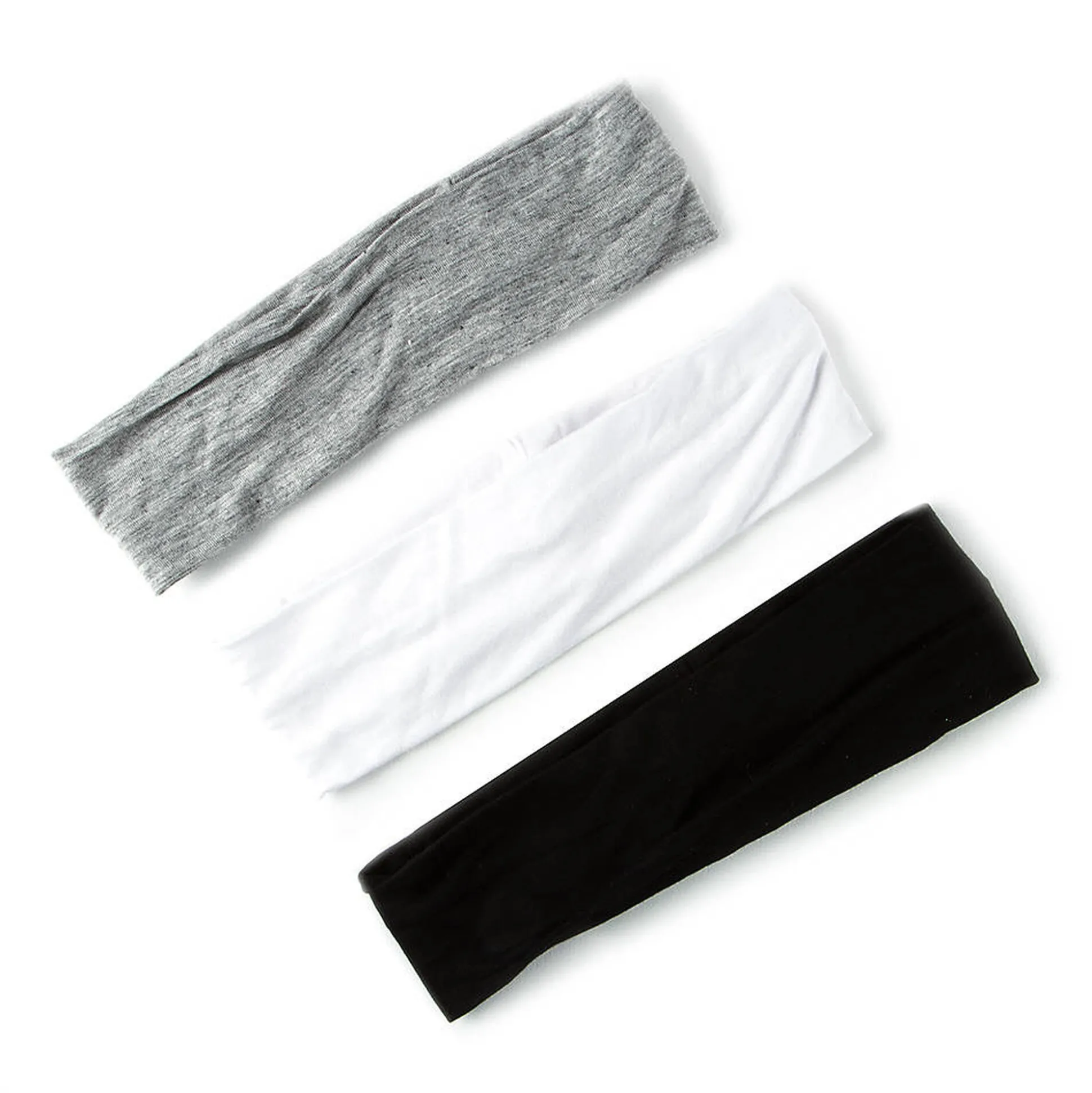 These soft jersey headwraps are a great way to keep hair in check while doing sports or for simple everyday wear. This pack includes a headwrap in black, white, and gray.