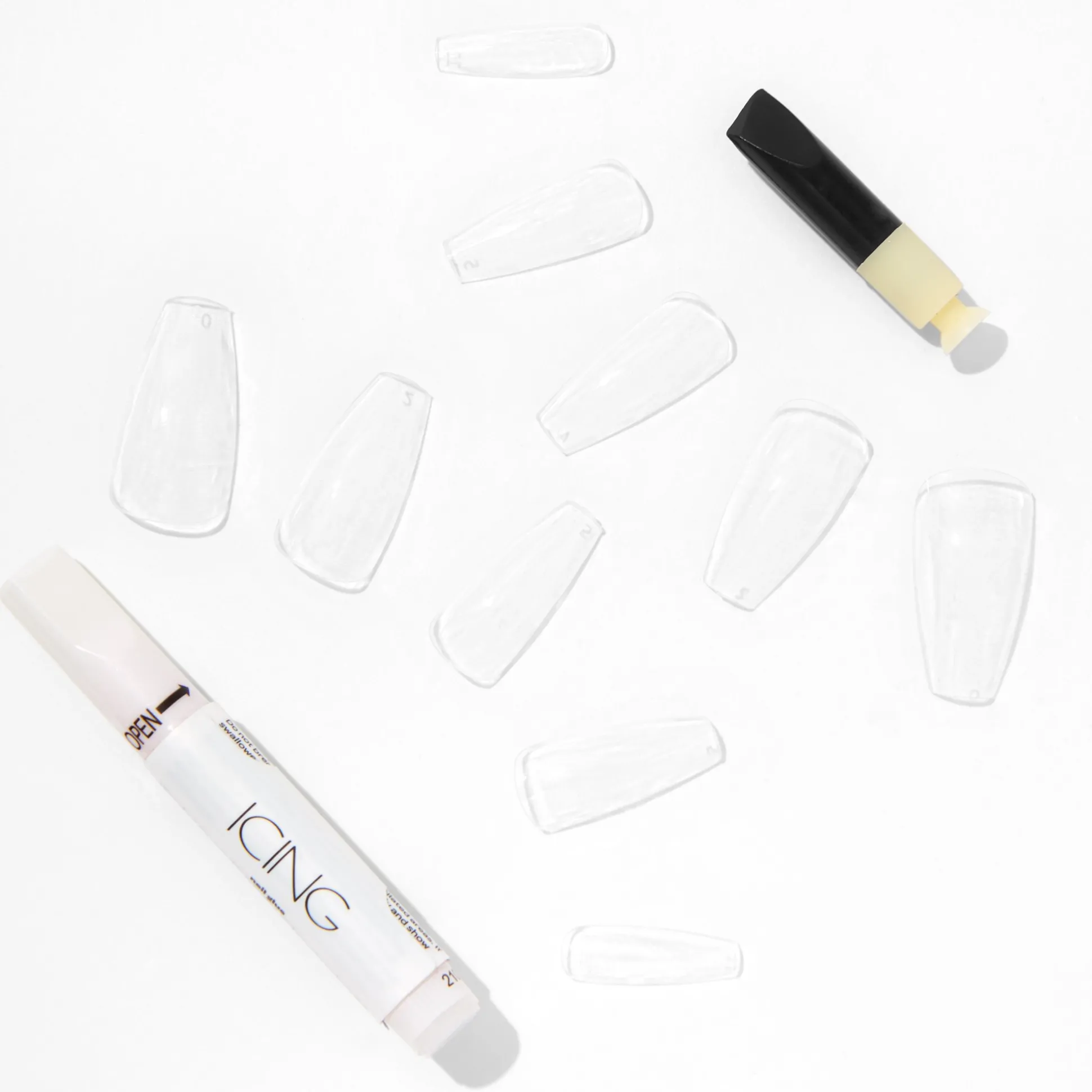 Every girl loves a trendy look, especially on her fingernails! This set of vegan, faux nails features the trendy squareletto shape, complete with a blank canvas. This set is perfect for those that want to get creative with their nail designs.