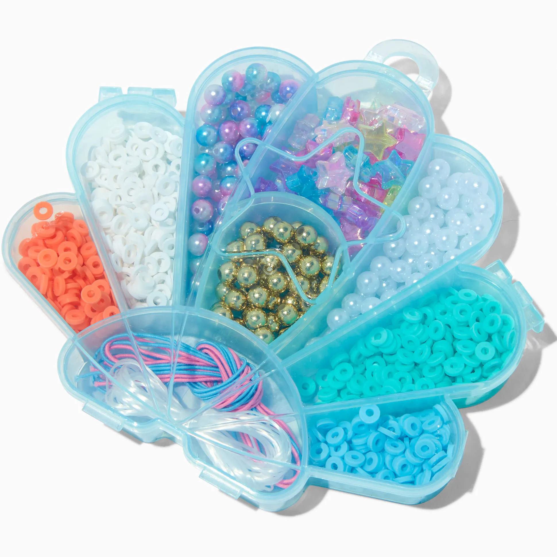 This kit has everything you need to make custom jewelry. It includes a variety of different color beads, heishi beads, and other jewelry-making accessories in a fun seashell design.