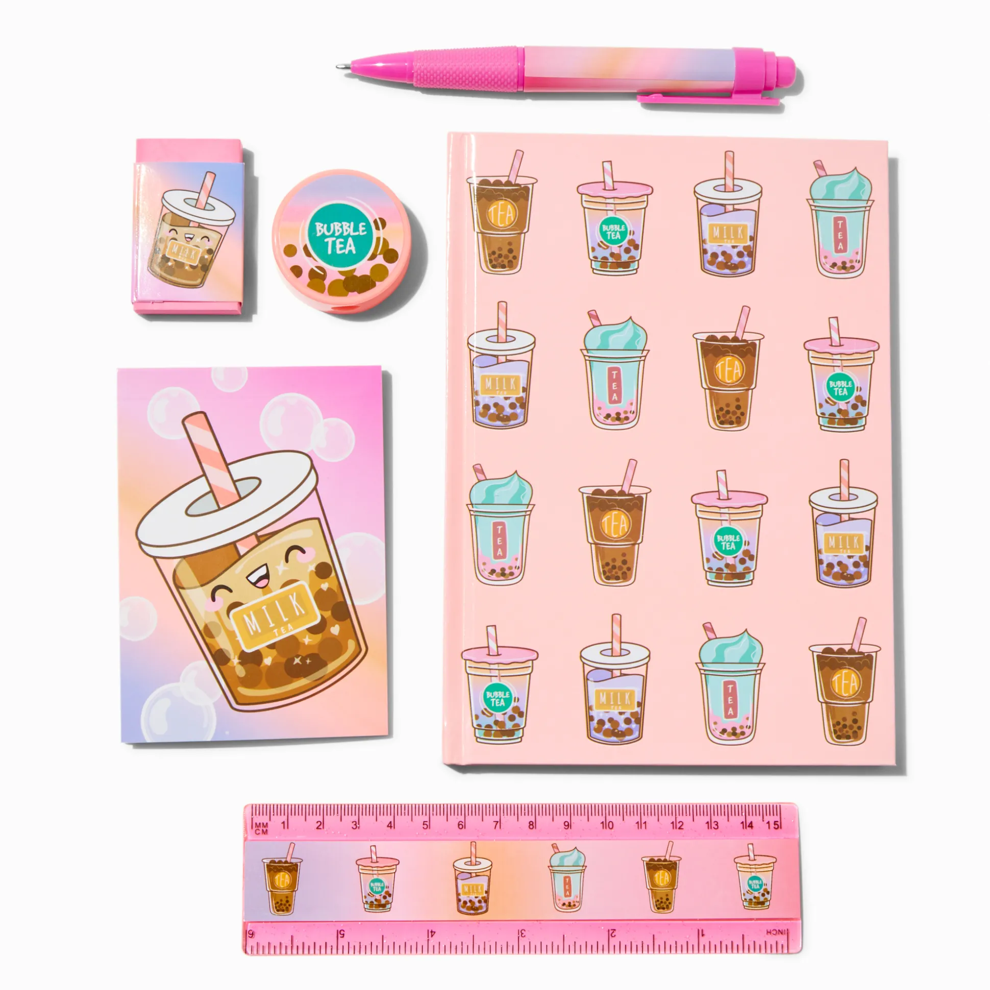 Decorated all over with an adorable design, this stationery set has everything you need for school and home! You get a pen, eraser, ruler, pencil sharpener, notebook, and mini notepad for doing homework, making lists, drawing pictures, and recording all your thoughts.