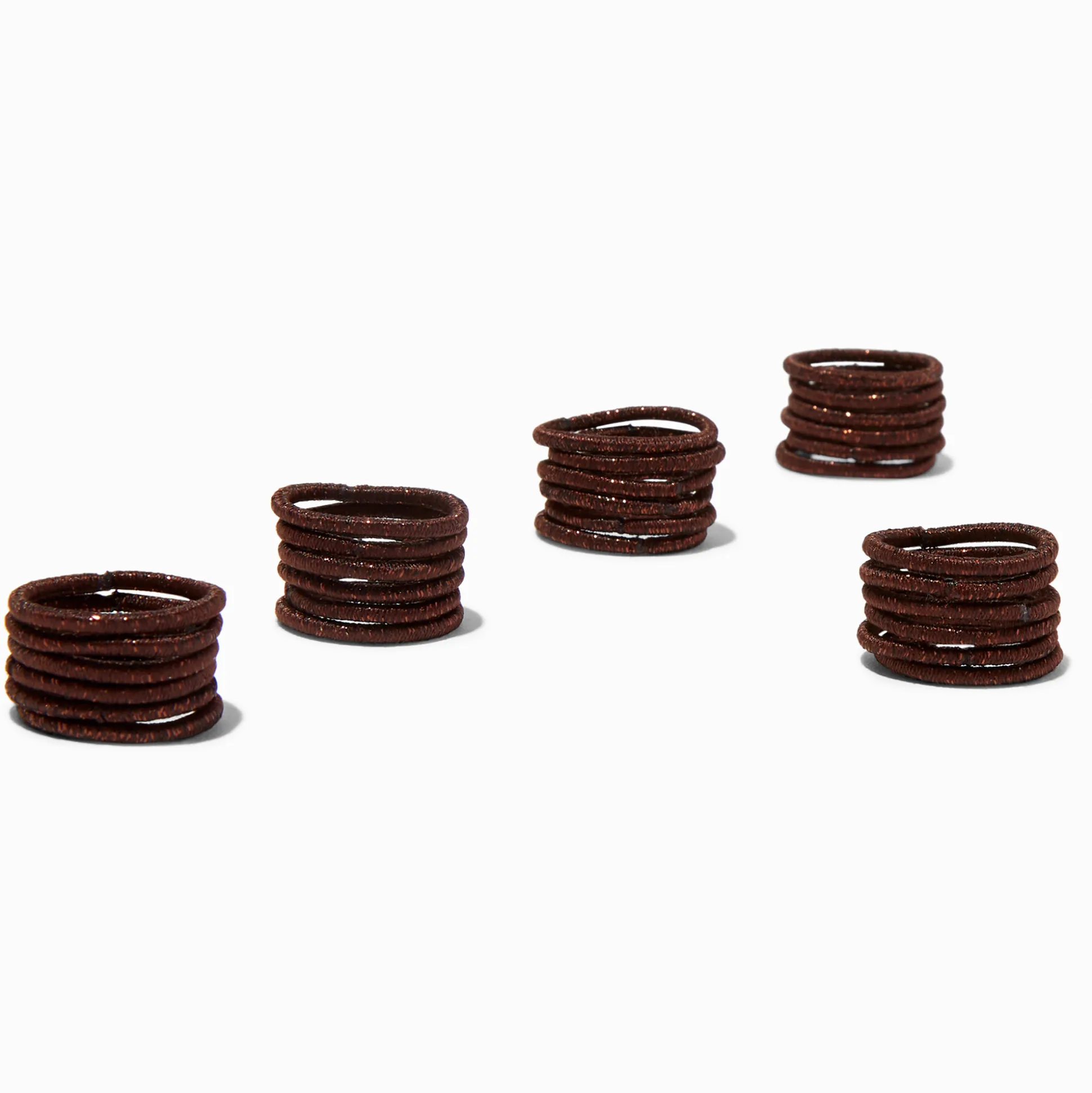 Never worry about running out of hair ties again! This must-have set includes 30 small hair ties with just a bit of sparkle.