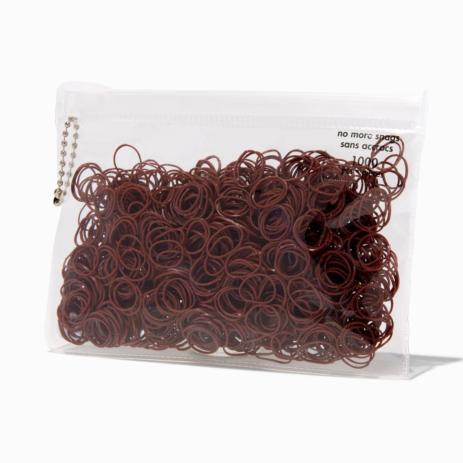 Tie your hairstyle up with these no-more snag mini hair ties. Perfect for securing braids or a ponytail, these brown ties come in a 1,000 pack.