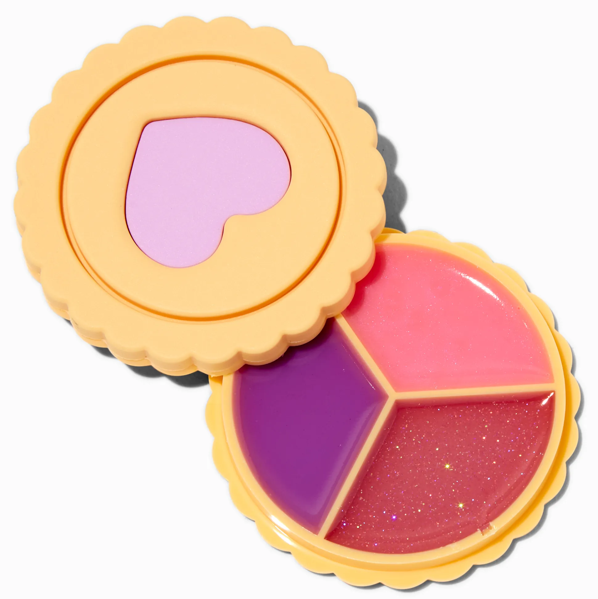 Have fun putting on your makeup with this delish lip gloss pot. This lippie trio comes inside a shortbread cookie-shaped packaging and is grape flavored.