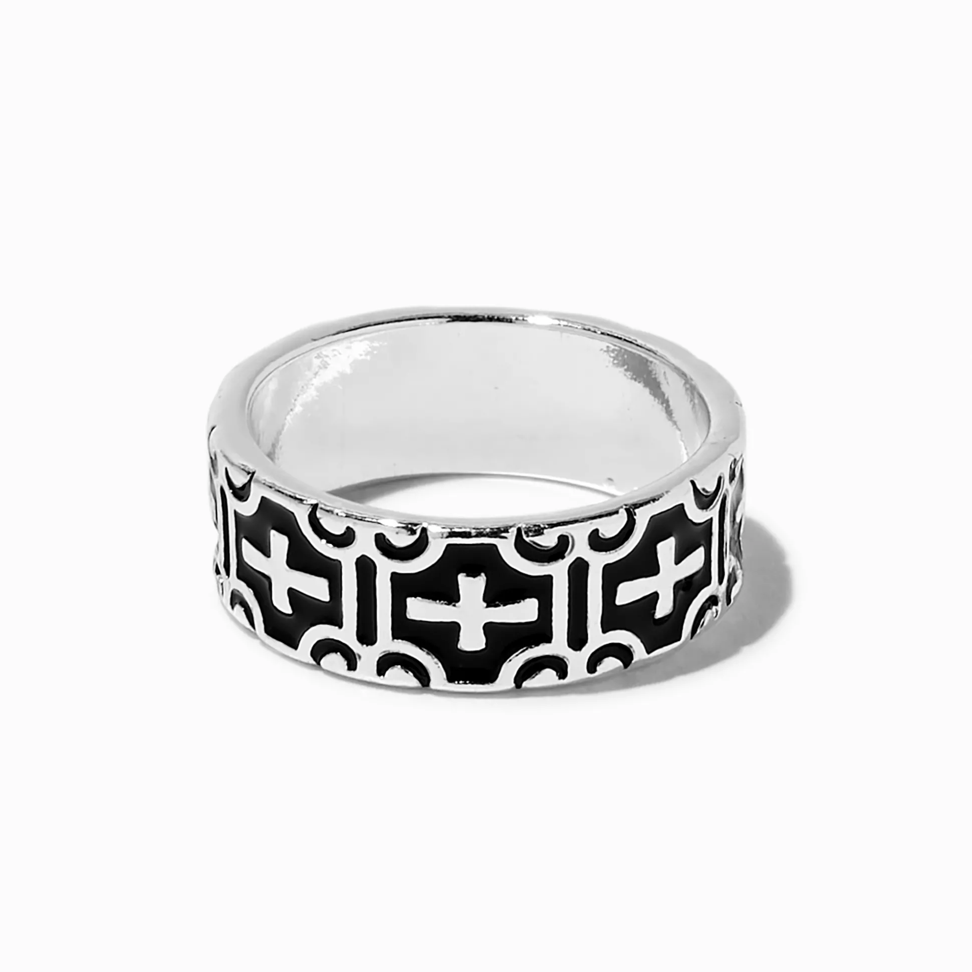 Rock a sweet all-over cross design on this ring for maximum impact. The silver-tone ring has a burnished finish.