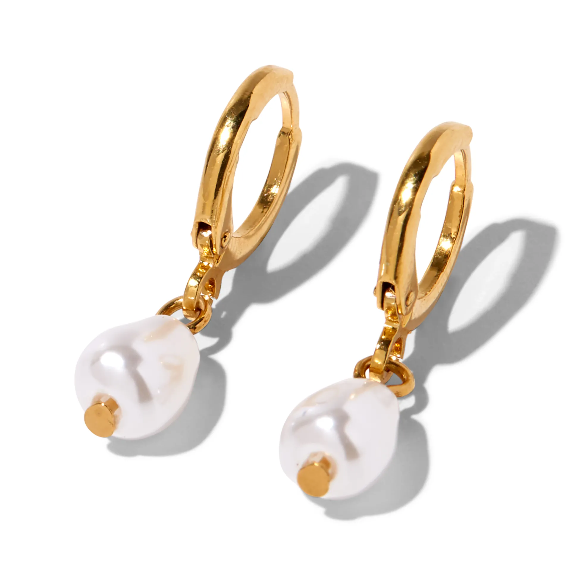 Classic style is easy in these huggie hoops. The gold-plated hoops have a faux pearl teardrop dangler, adding to your look.