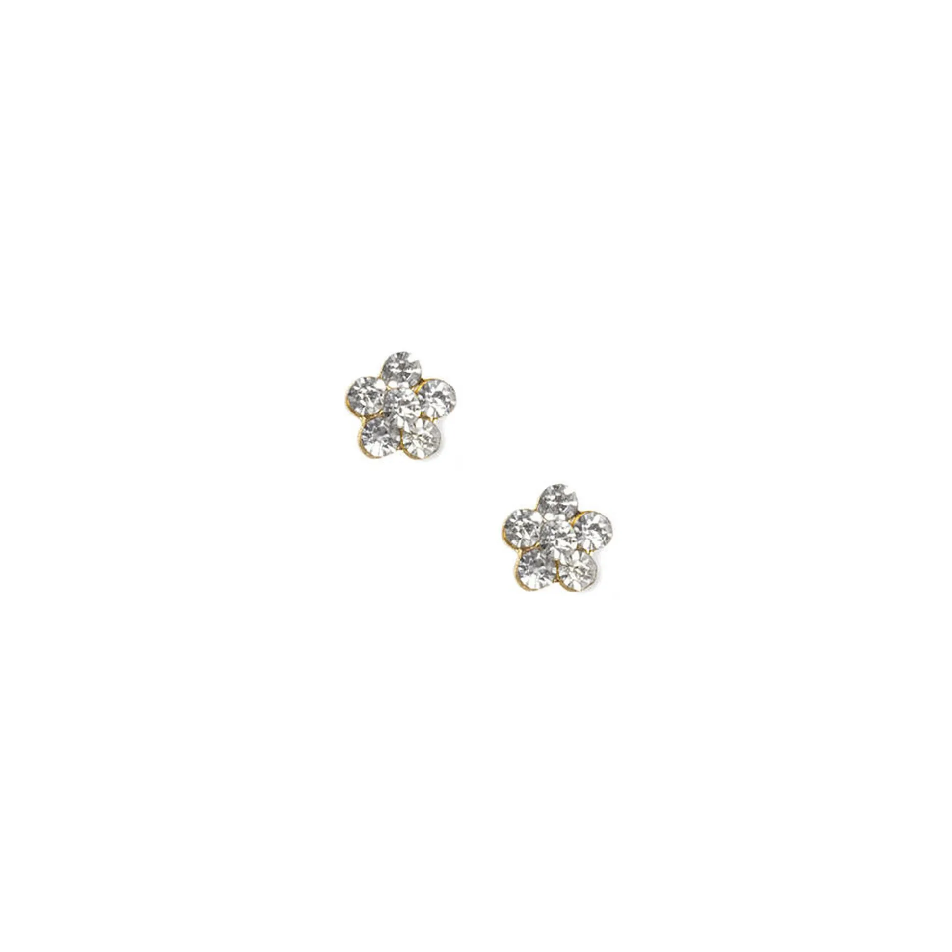 Round crystals form a sweet flower shape with maximum sparkle on these gold-plated stud earrings.