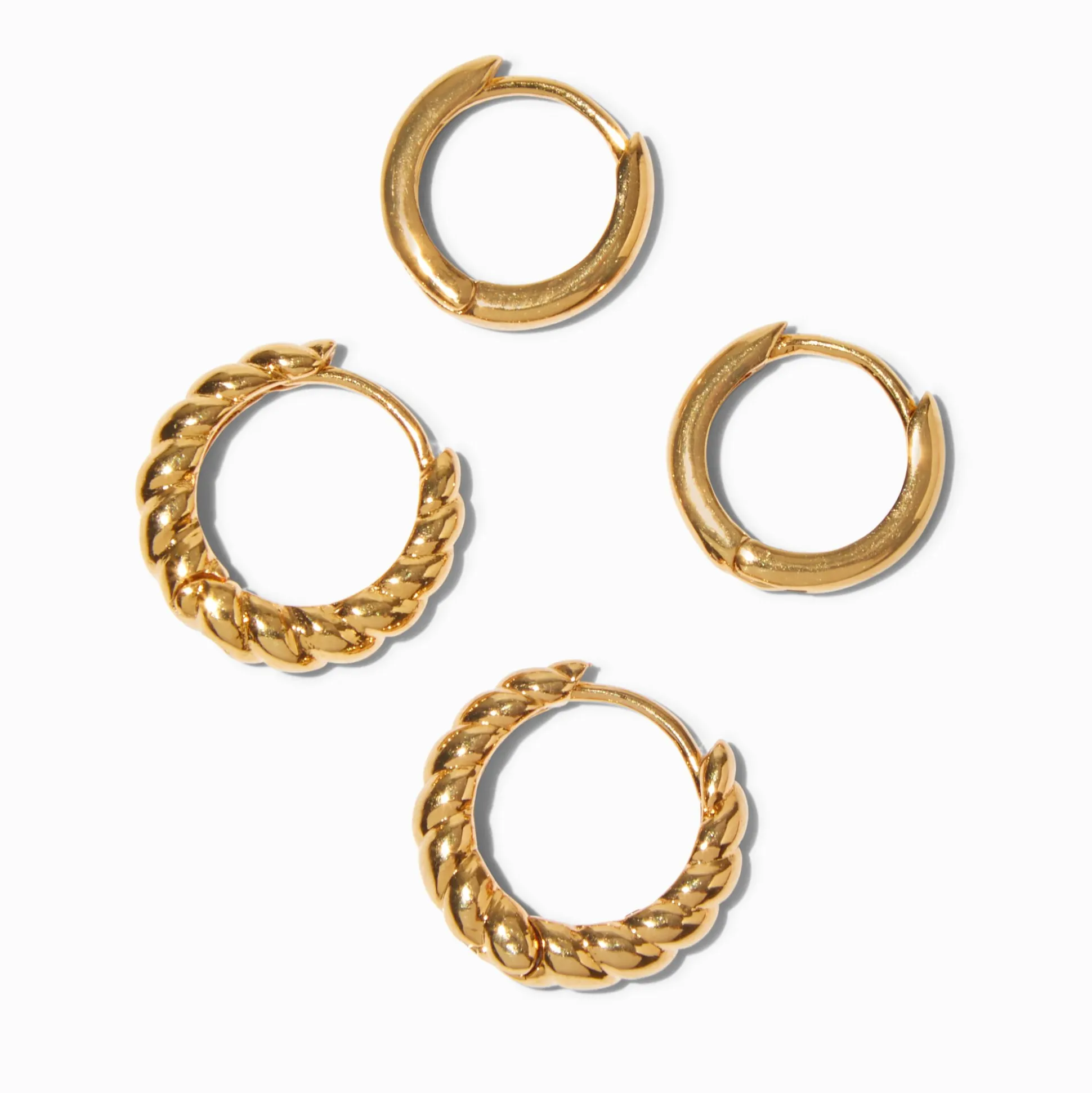 Precious golden hoops! This 18kt gold plated twisted hoop earrings set from our C LUXE by Claire’s jewelry collection will be your new basic ‘go-to’ fave! SO classic and chic!