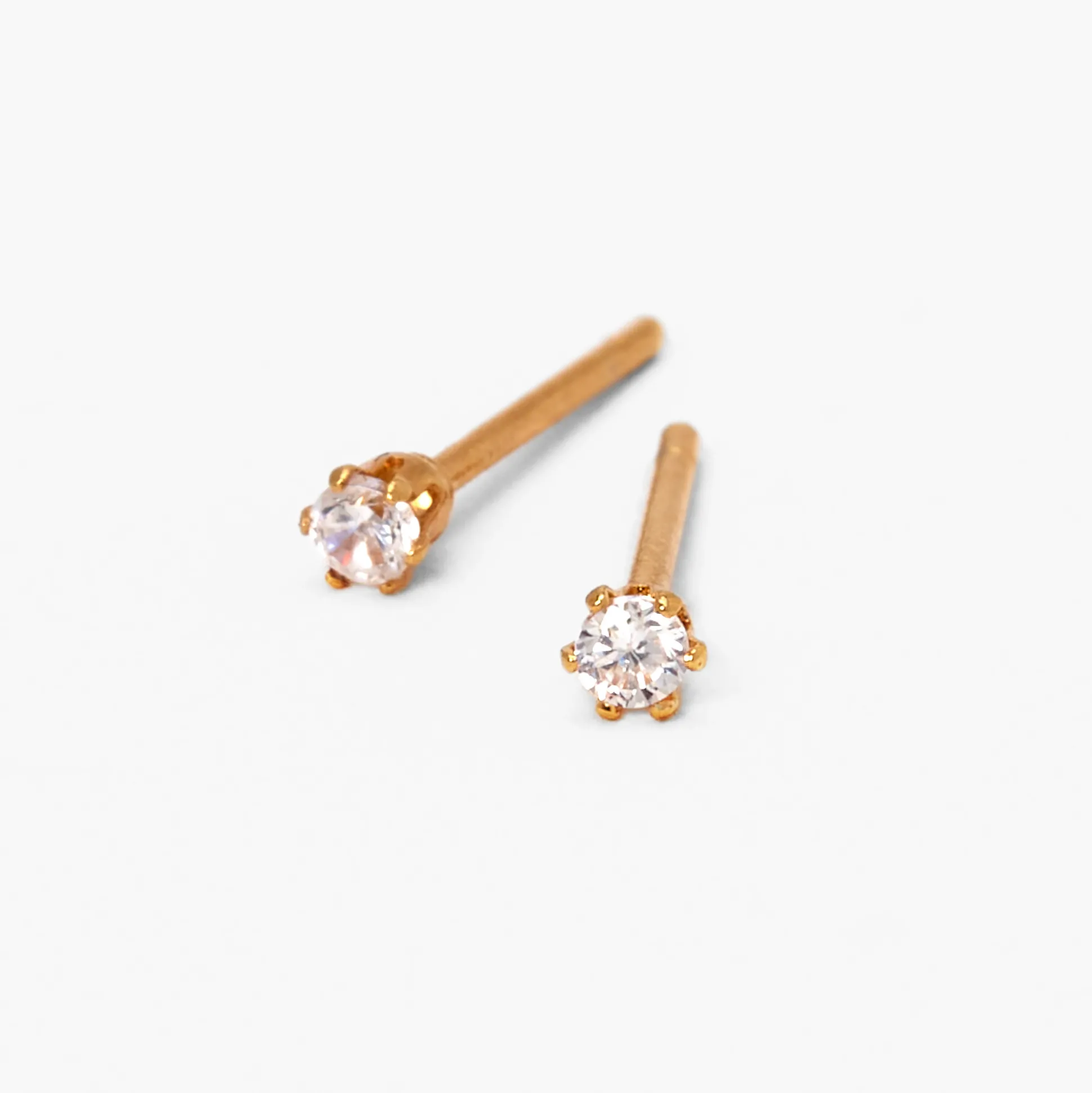 C LUXE by Claire's 18kt Gold Plated Cubic Zirconia 2mm Round Stud Earrings