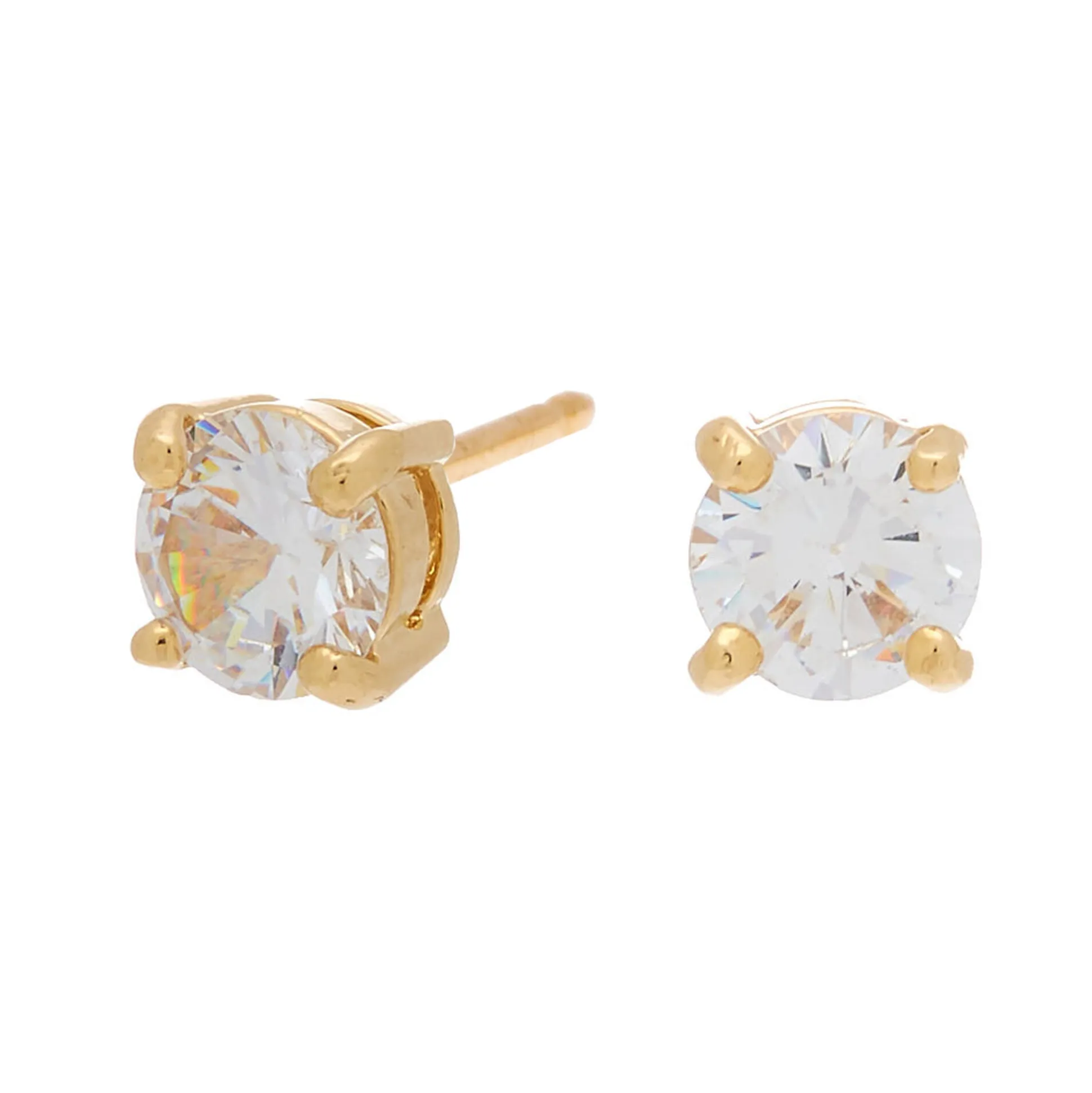 Add a bit of glitz & glam to your ear party! These sleek stud earrings feature an 18kt gold plated design and clear cubic zirconia stones.