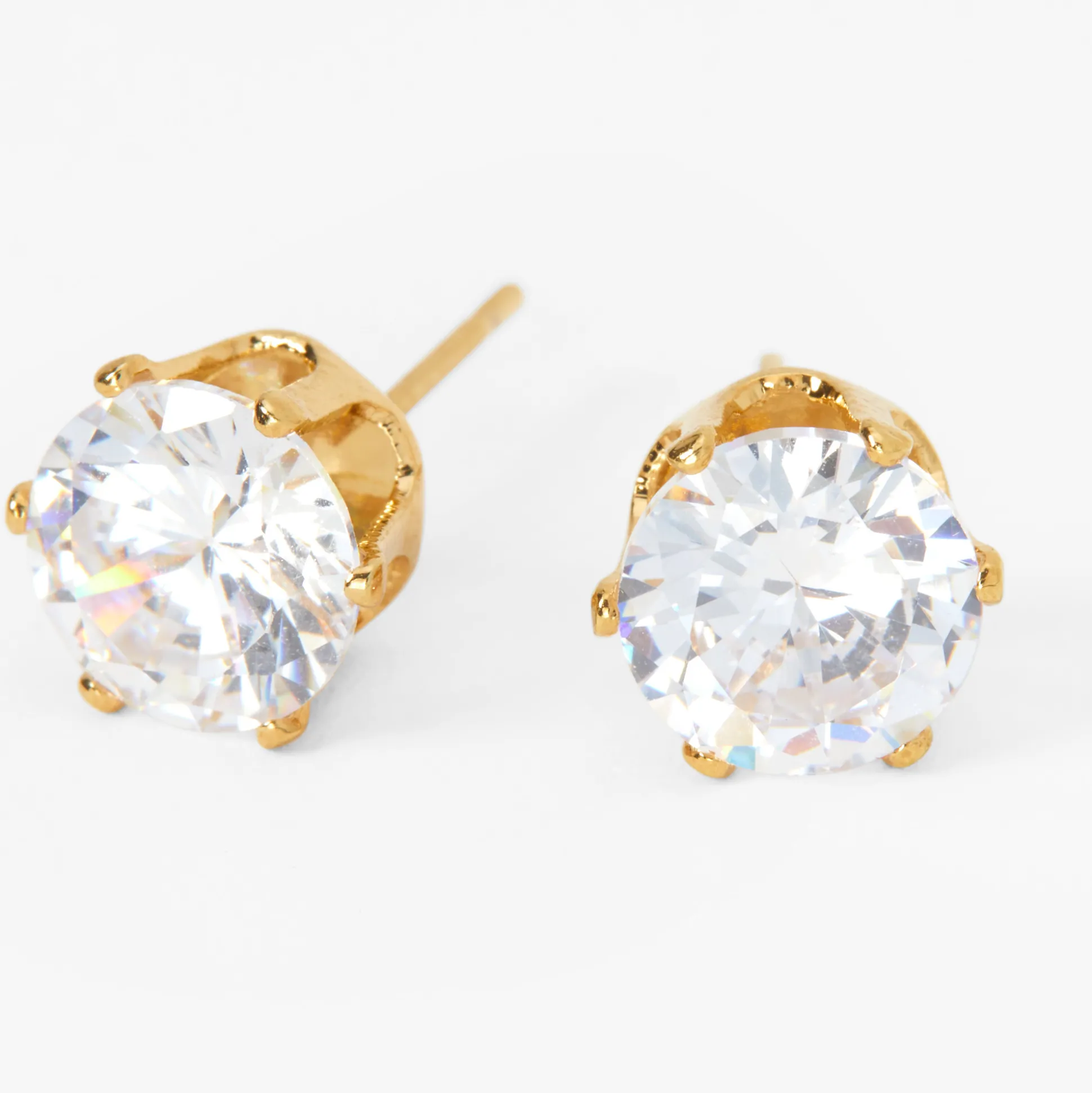 Add a pop of sparkle to your ears with this must-have pair of gold plated earrings! Each stud features a round cubic zirconia stone in a classic cupcake setting.