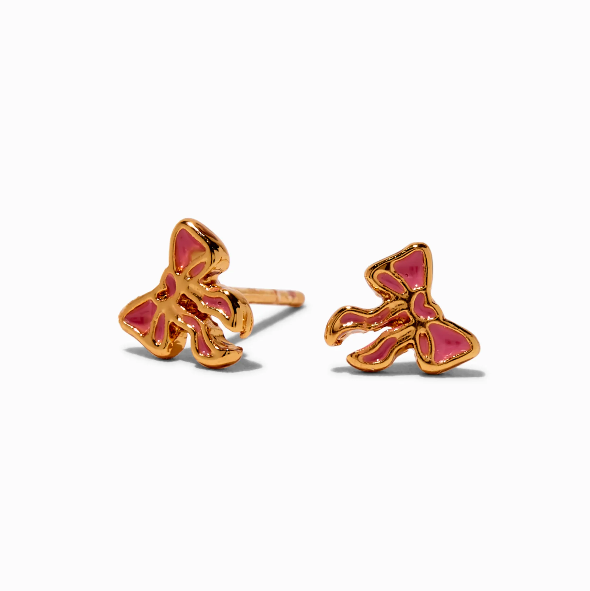 Be the most you in these delightful 18kt gold plated stud earrings. The post-back designs have bow shapes with pink enamel details.
