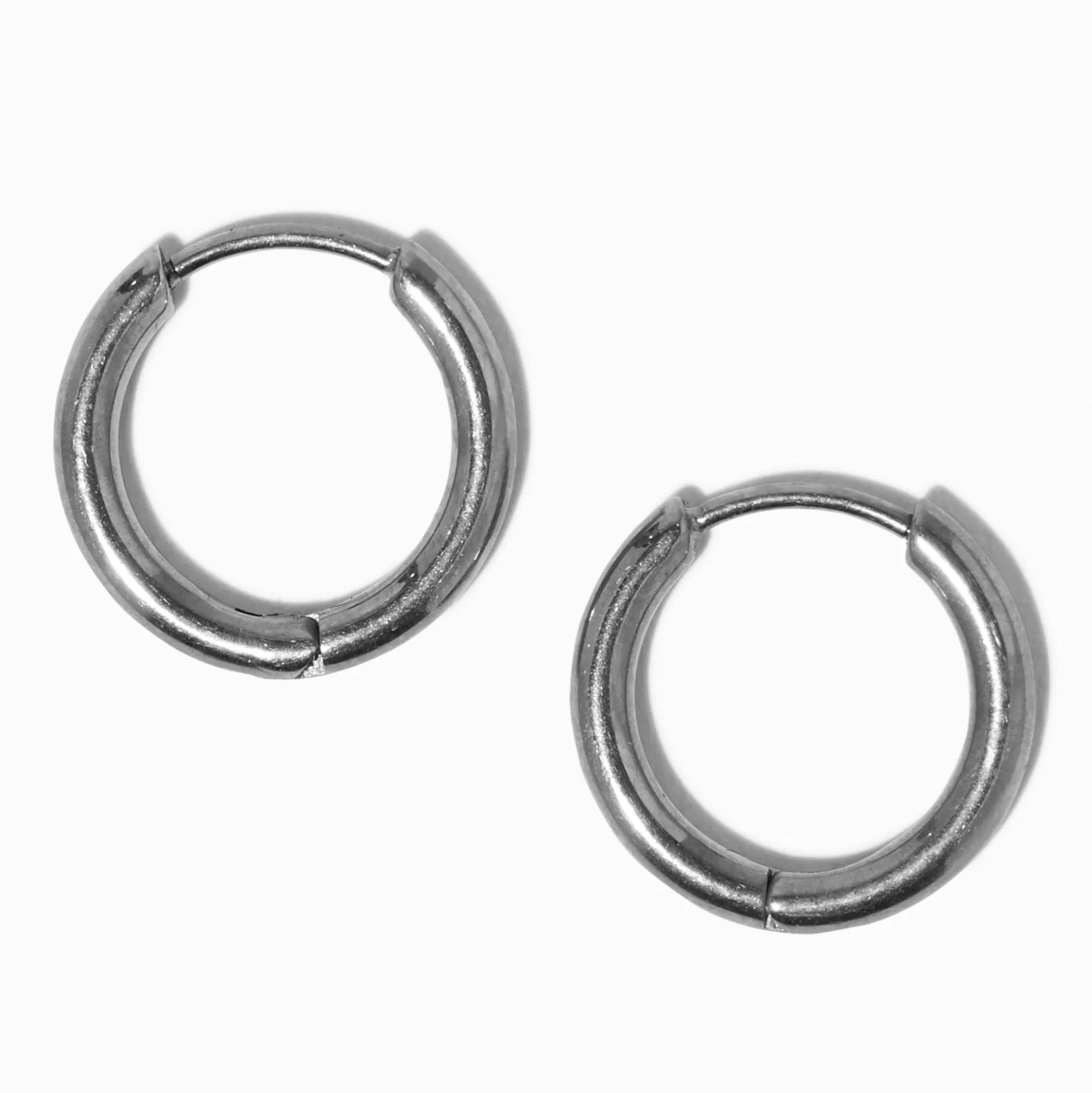 Go half and half with these trendy hoops. Featuring an easy clicker hinge closure, these titanium tube earrings are a must-have to wear with any fashionable look.