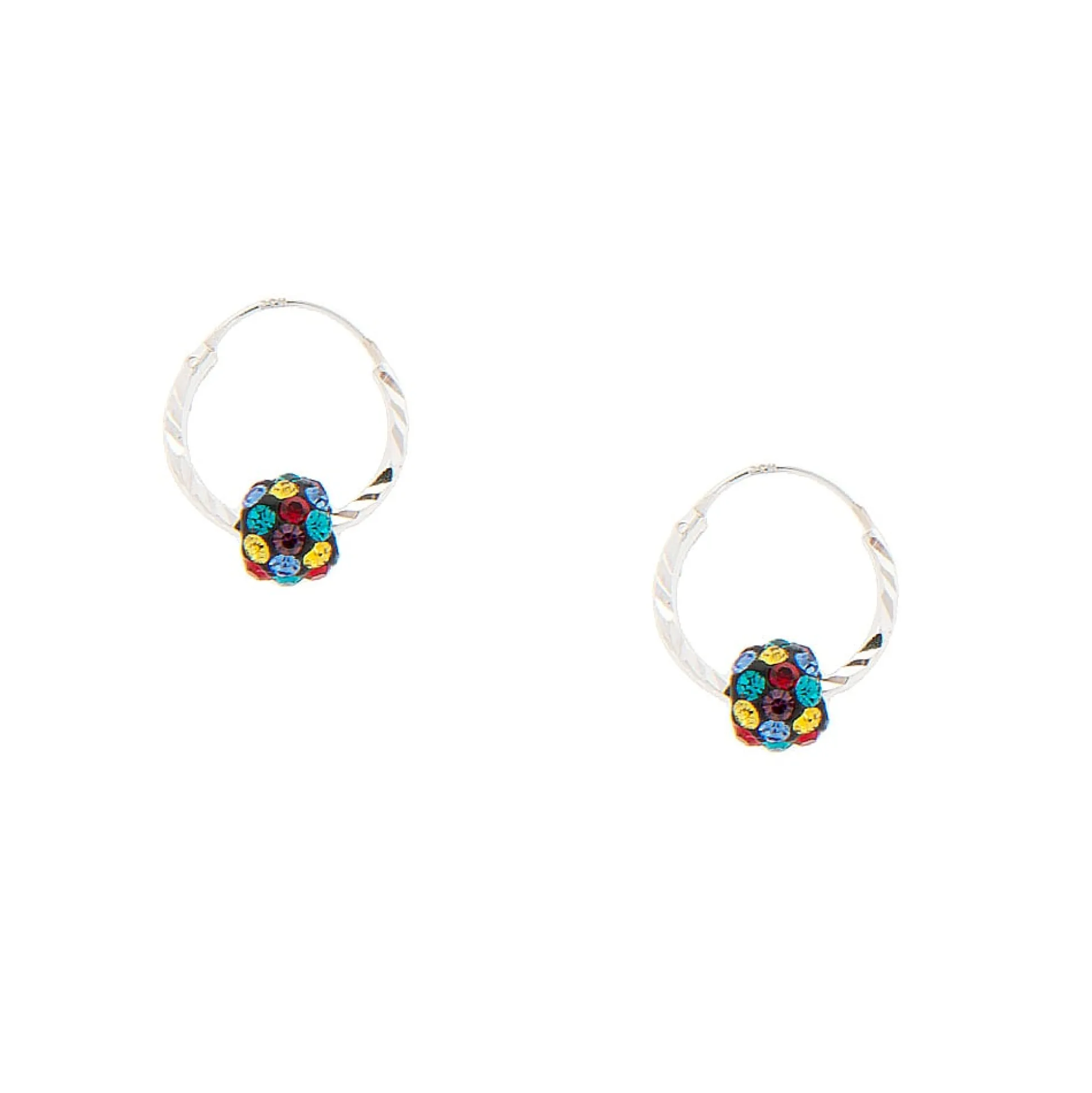 A single embellished fireball gem adorns a twisted silver-tone hoop for sparkling style. Add some awesome flair to your outfit with this styling pair of earrings!