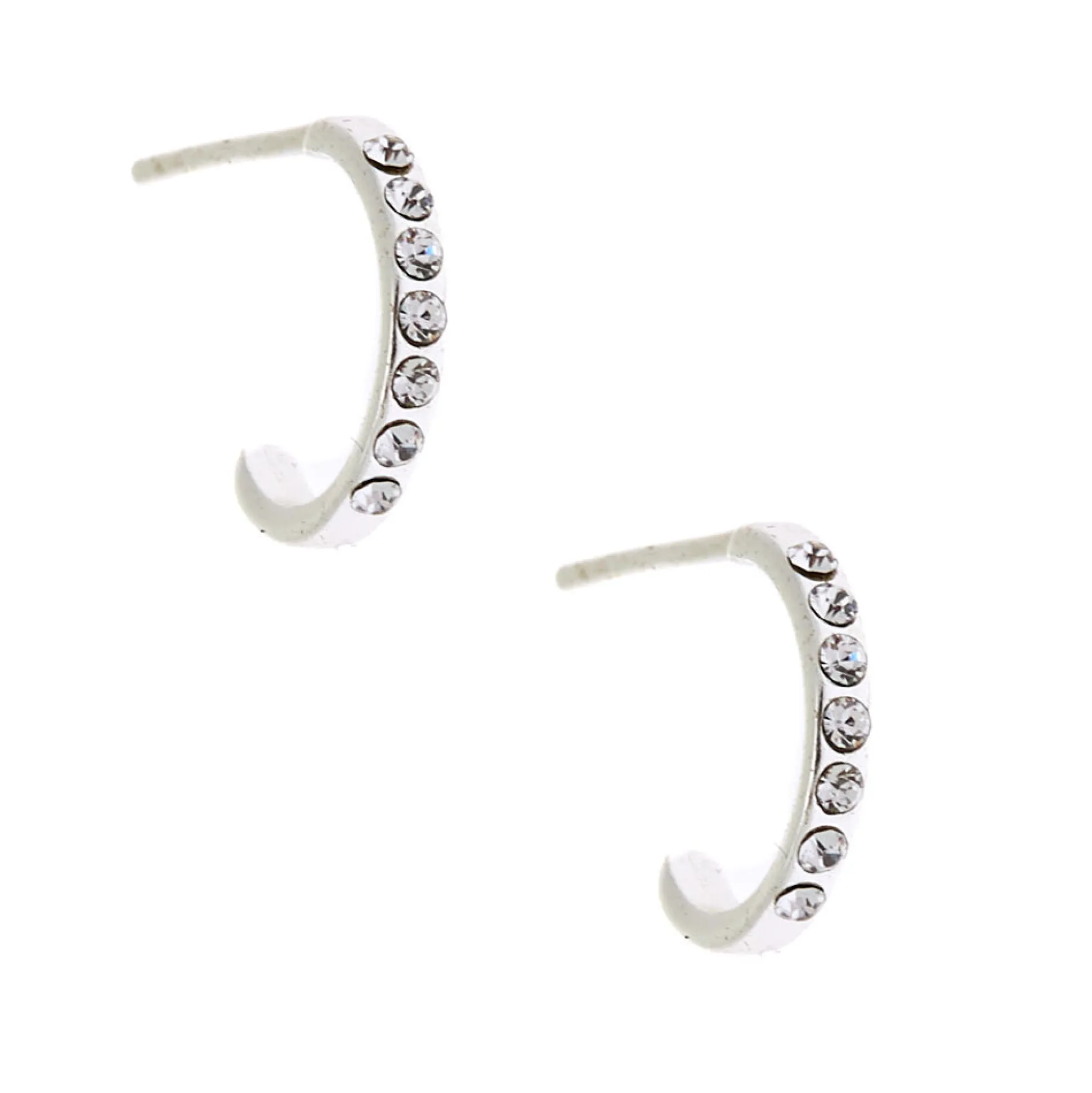 Glam up your look with a pair of half hoop earrings! These sterling silver earrings feature sparkly faux crystal accents along each half hoop.