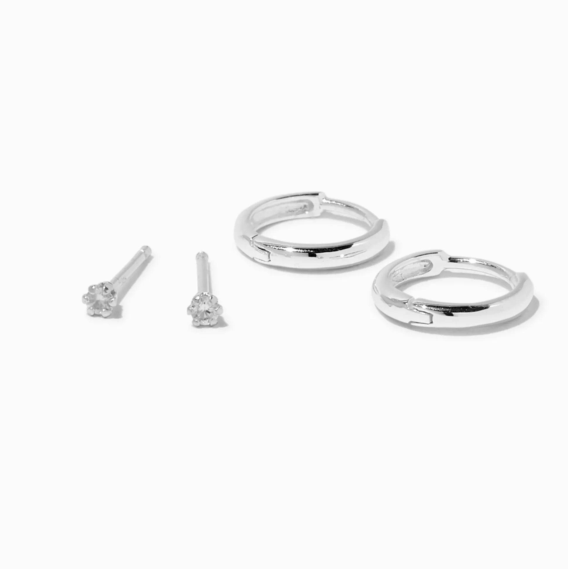 Always have the perfect pair of earrings with this sterling silver twosome from our C LUXE by Claire’s jewelry collection! The set includes a pair of cubic zirconia studs and coordinating silver hoops.