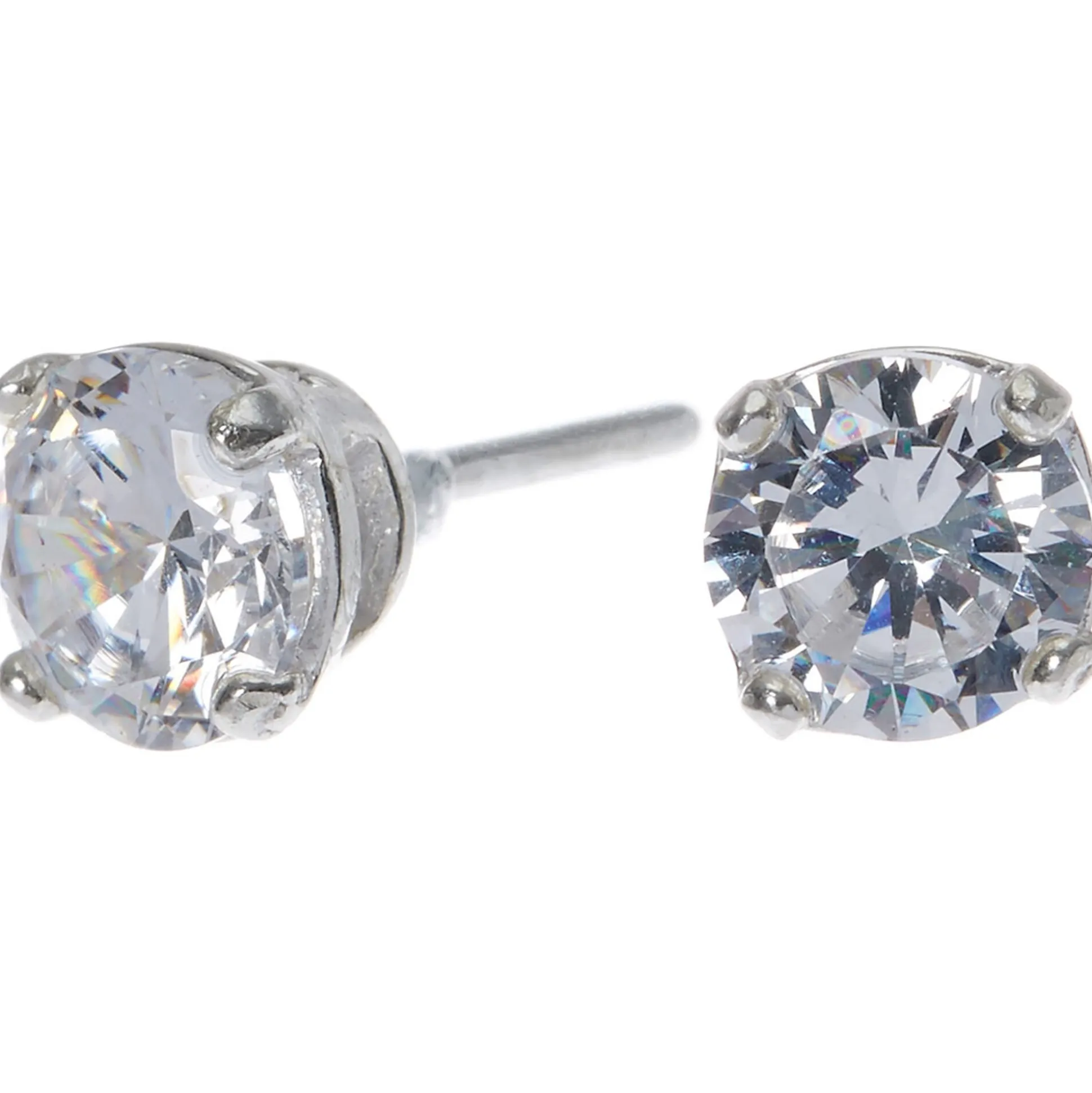 Sparkle all day long with these sterling silver stud earrings! This pair of earrings feature a round cubic zirconia stone on each stud.