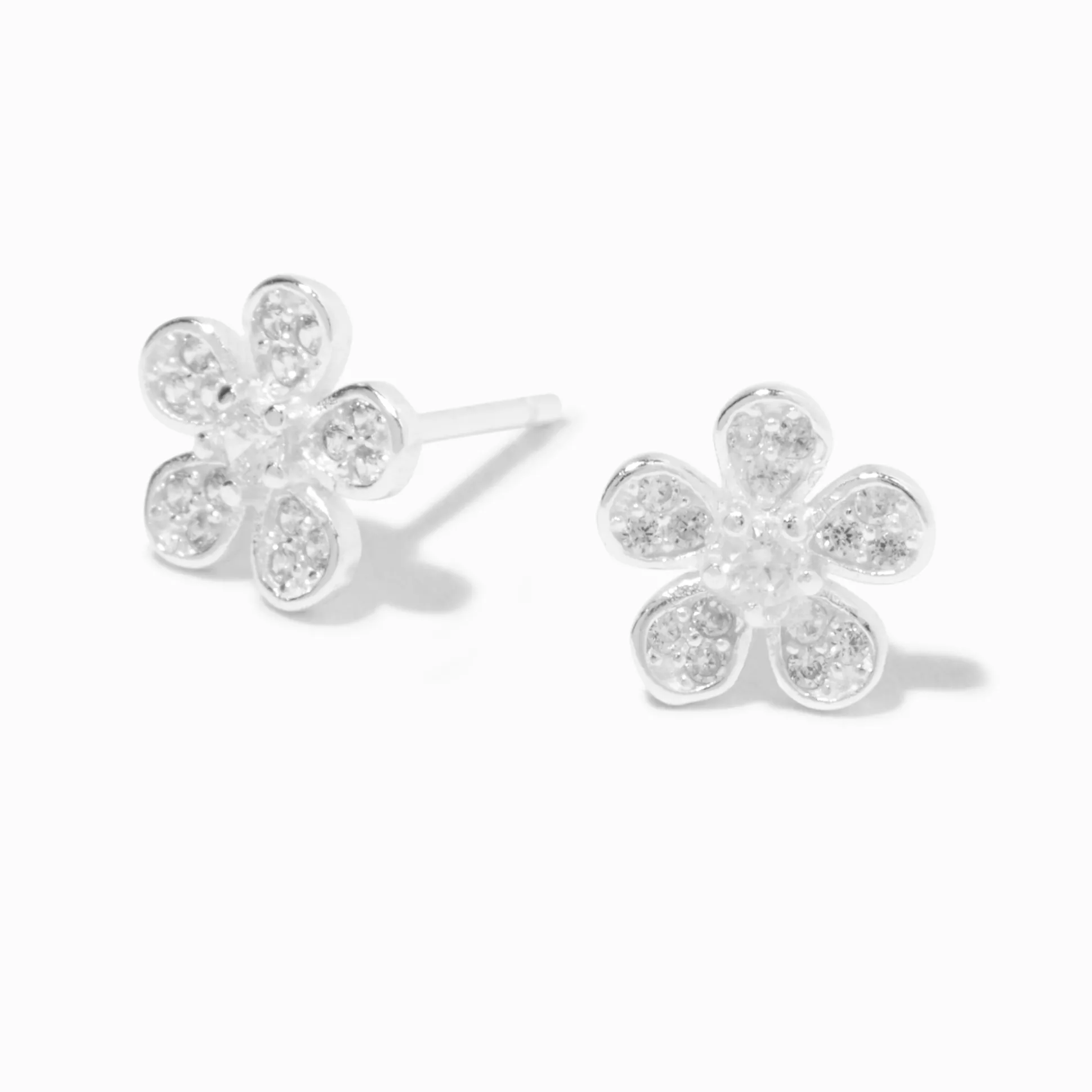 Create a stunning earscape with these darling daisies. The sterling silver design is covered in faux crystals for maximum sparkle.